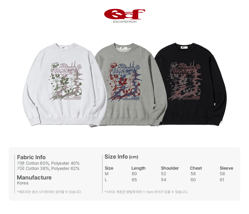 이스케이프프롬 블룸 ESCF 프린트 맨투맨 화이트멜란지