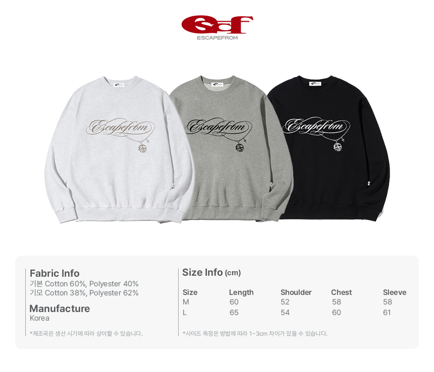 이스케이프프롬 ESCF 체인 프린트 맨투맨 그레이