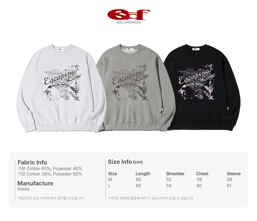 이스케이프프롬 이스케이핑 인 러브 프린트 맨투맨 그레이