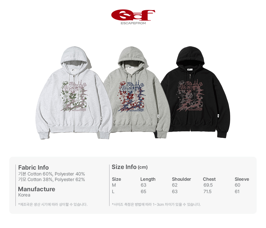 이스케이프프롬 블룸 ESCF 프린트 투웨이 후드집업 화이트멜란지