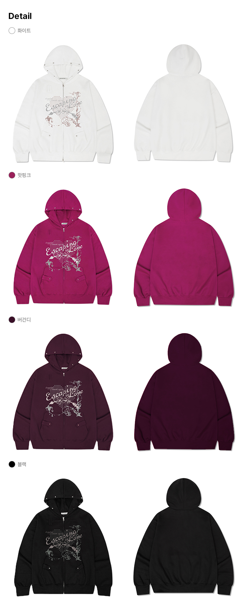 이스케이프프롬 이스케이핑 인 러브 프린트 별 리벳 포인트 기모 투웨이 후드집업 블랙