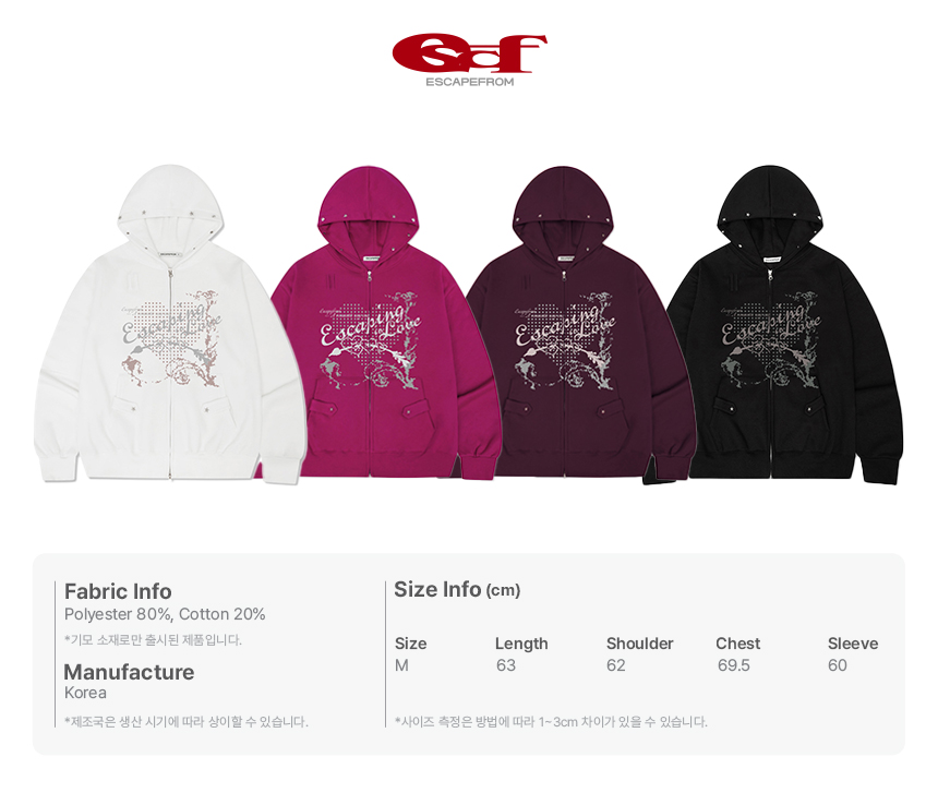 이스케이프프롬 이스케이핑 인 러브 프린트 별 리벳 포인트 기모 투웨이 후드집업 버건디