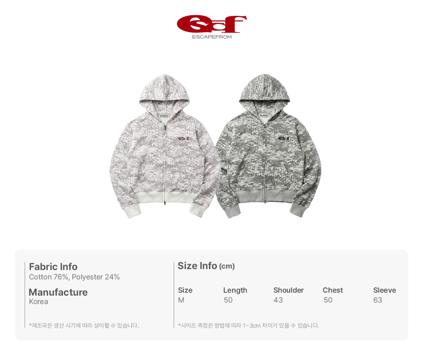 이스케이프프롬 호피 카모 풀프린트 스탠다드핏 후드집업 그레이