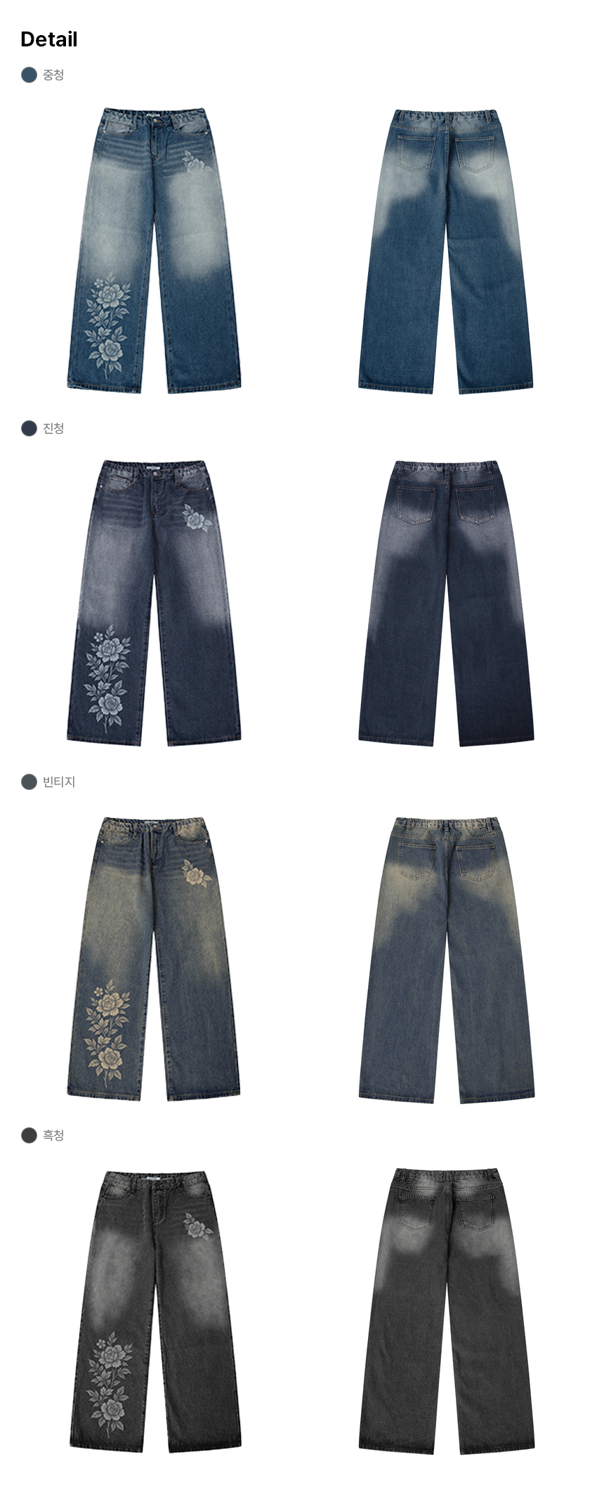 이스케이프프롬 장미 프린트 밴딩 워싱 데님 팬츠 빈티지