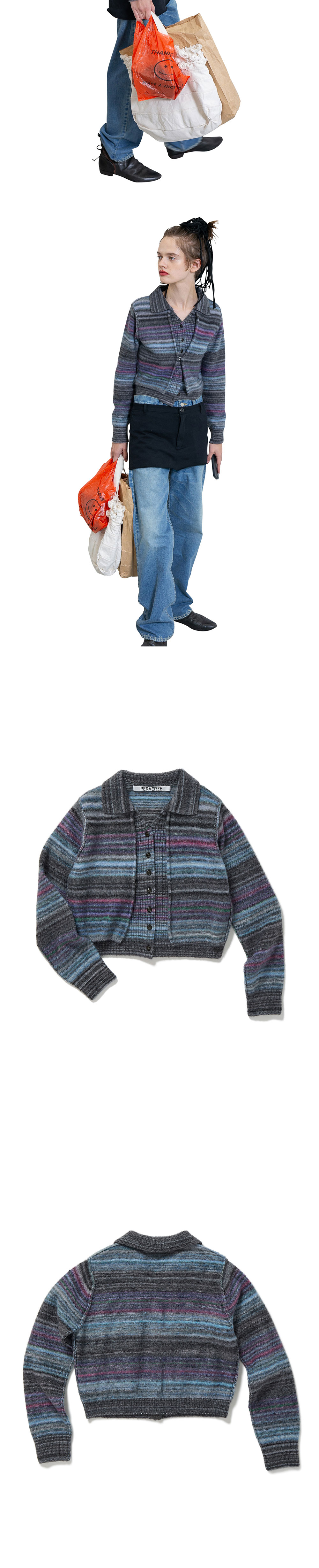 퍼버즈 우먼 스트라이프 니트 셔츠 그레이 - 26SS