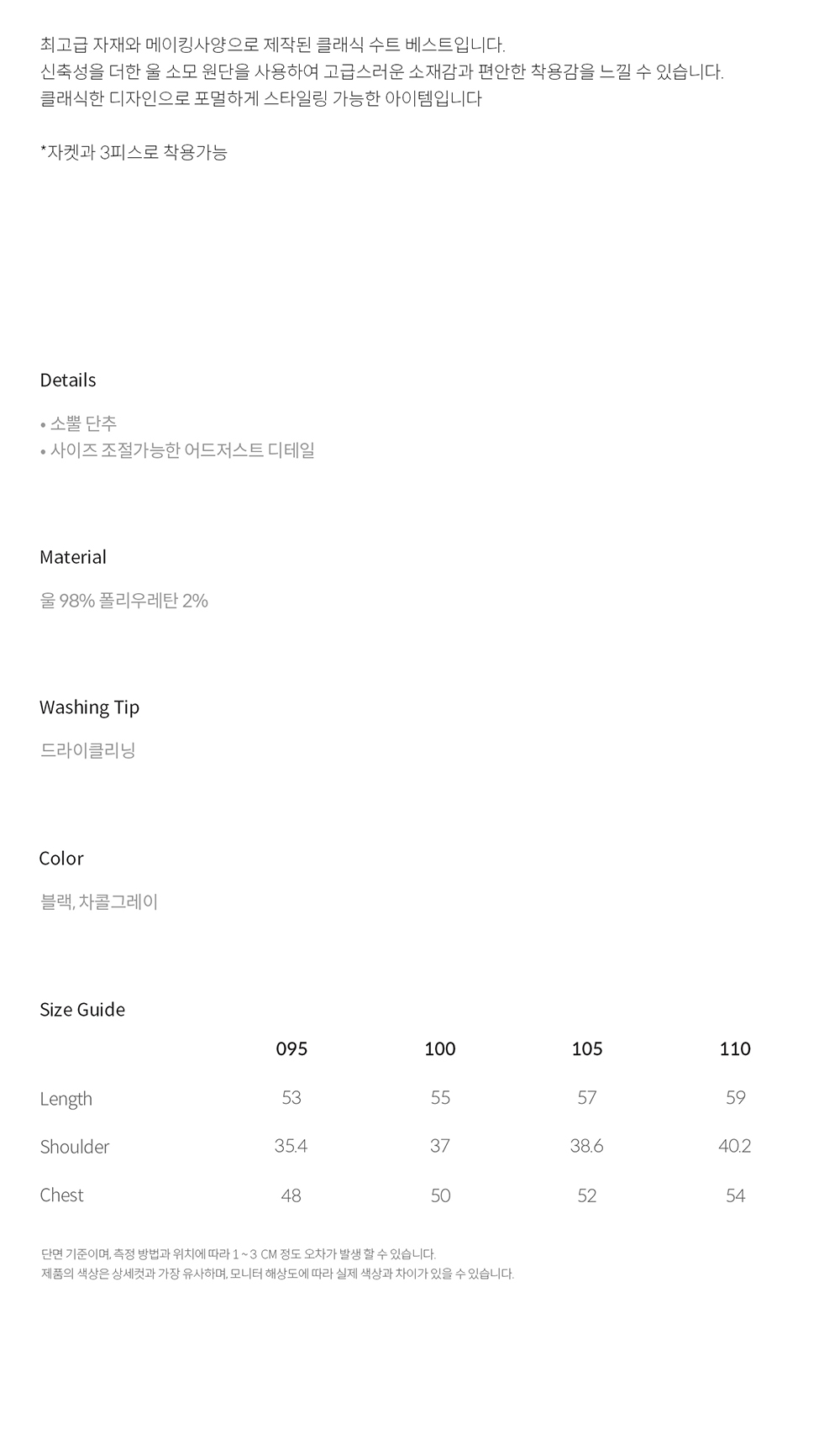 티엔지티 클래식 울 수트 베스트 블랙