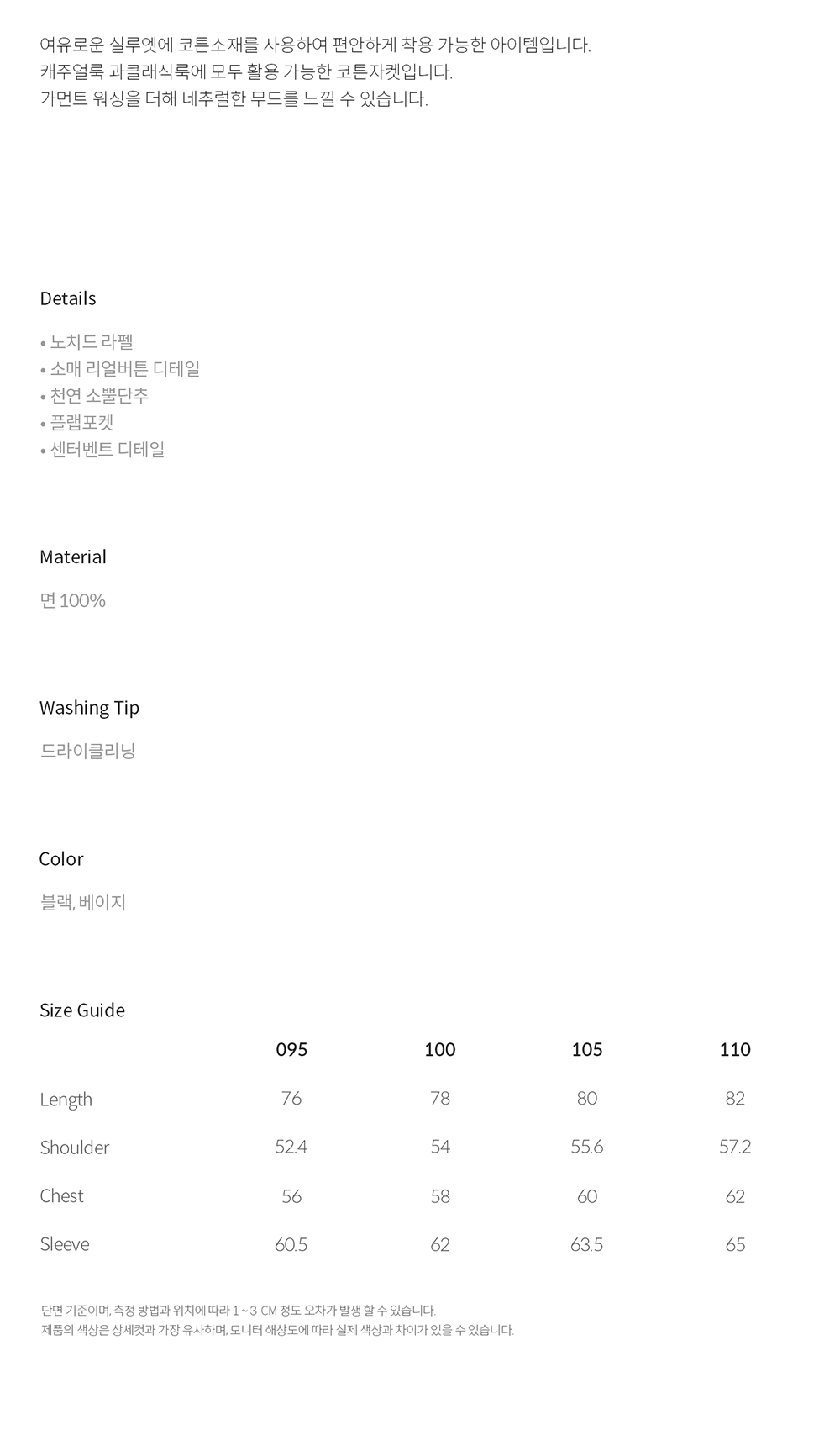 티엔지티 컴포트 코튼 자켓 베이지