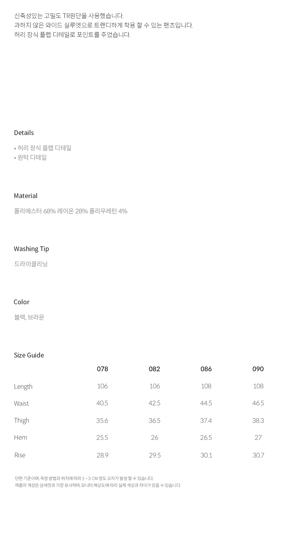 티엔지티 플랩 디테일 와이드핏 팬츠 브라운