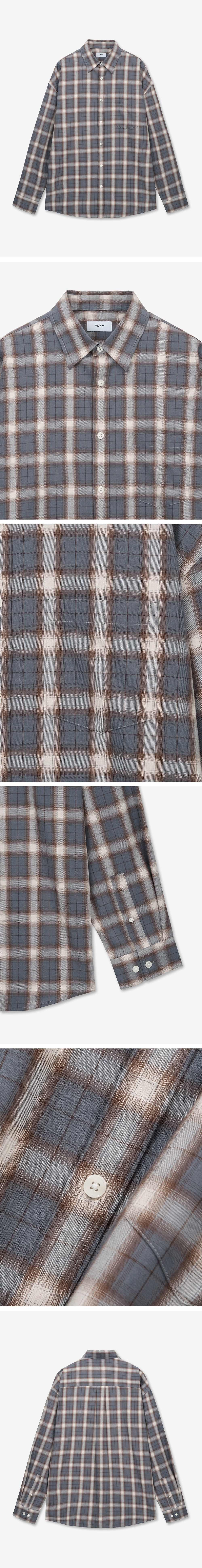 티엔지티 오버사이즈 체크 셔츠 애쉬브라운