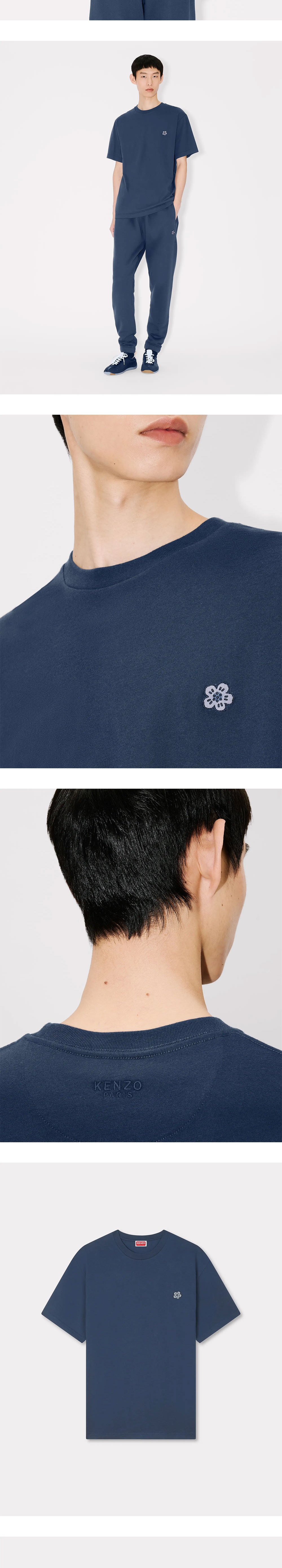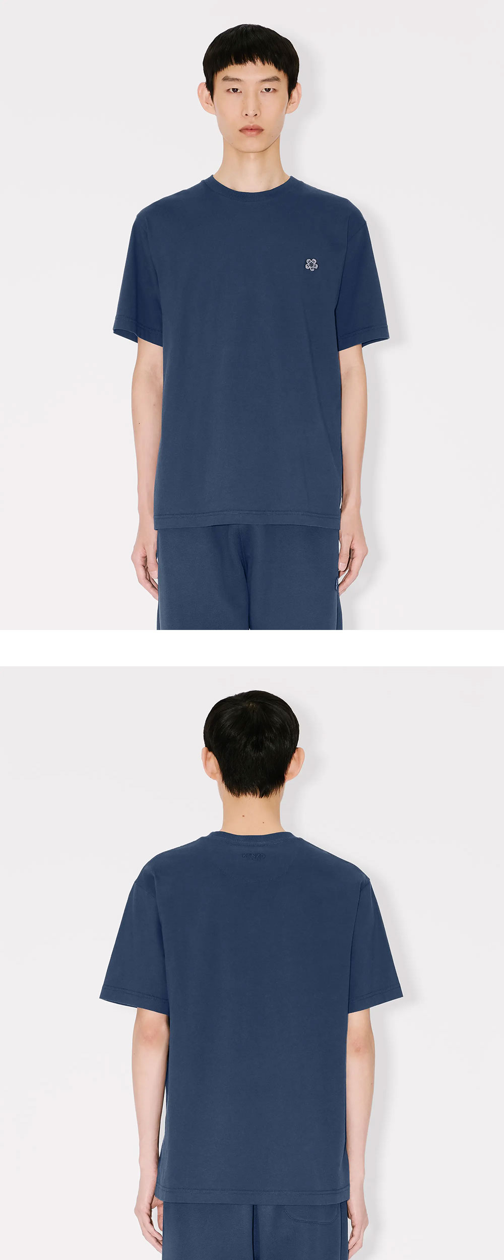 겐조 보케 플라워 엠브로이더드 티셔츠 네이비 블루 입니다. - 라이트 저지 소재 - 뒷면 네크라인에 반달 모양 디테일 - 뒷면 상단에 'KENZO Paris' 로고와함께 '보케 플라워' 로고가 입체적으로 자수 처리