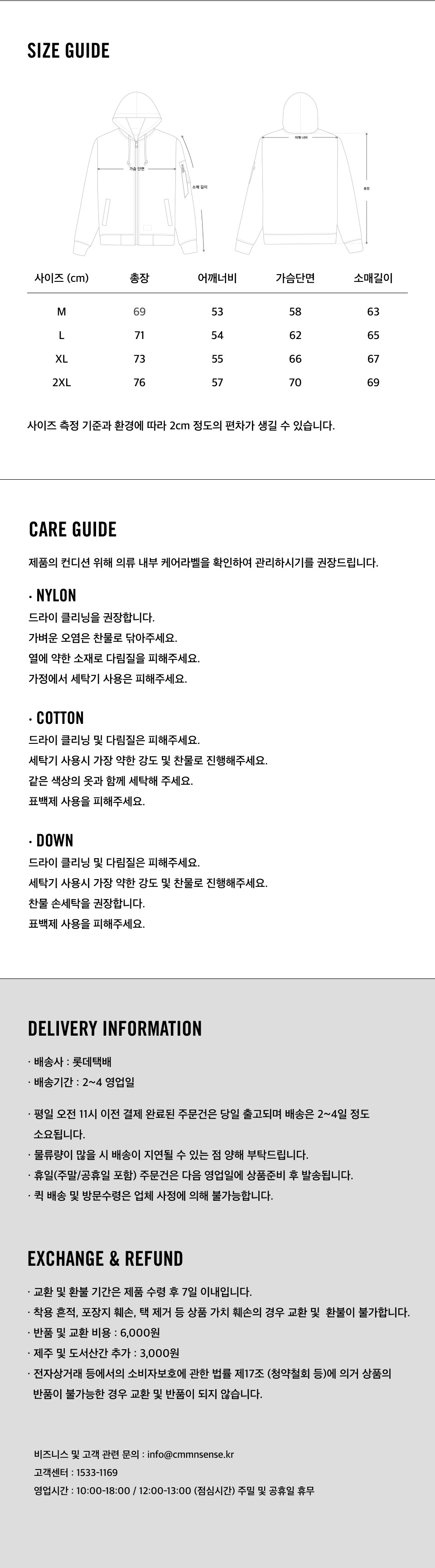 | 총장 | 어깨너비 | 가슴단면 | 소매길이 |