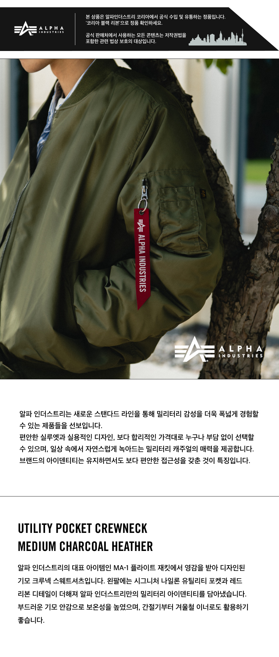알파 인더스트리 유틸리티 포켓 크루넥 미디엄 차콜 헤더