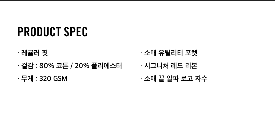 | 총장 | 어깨너비 | 가슴단면 | 소매길이 |