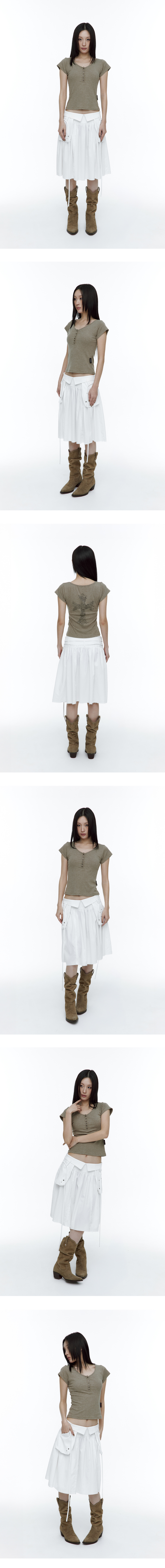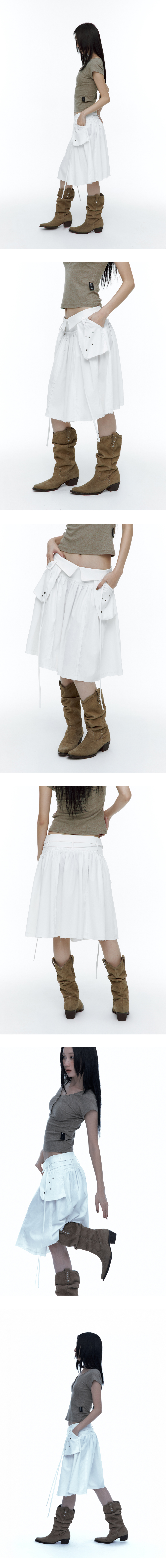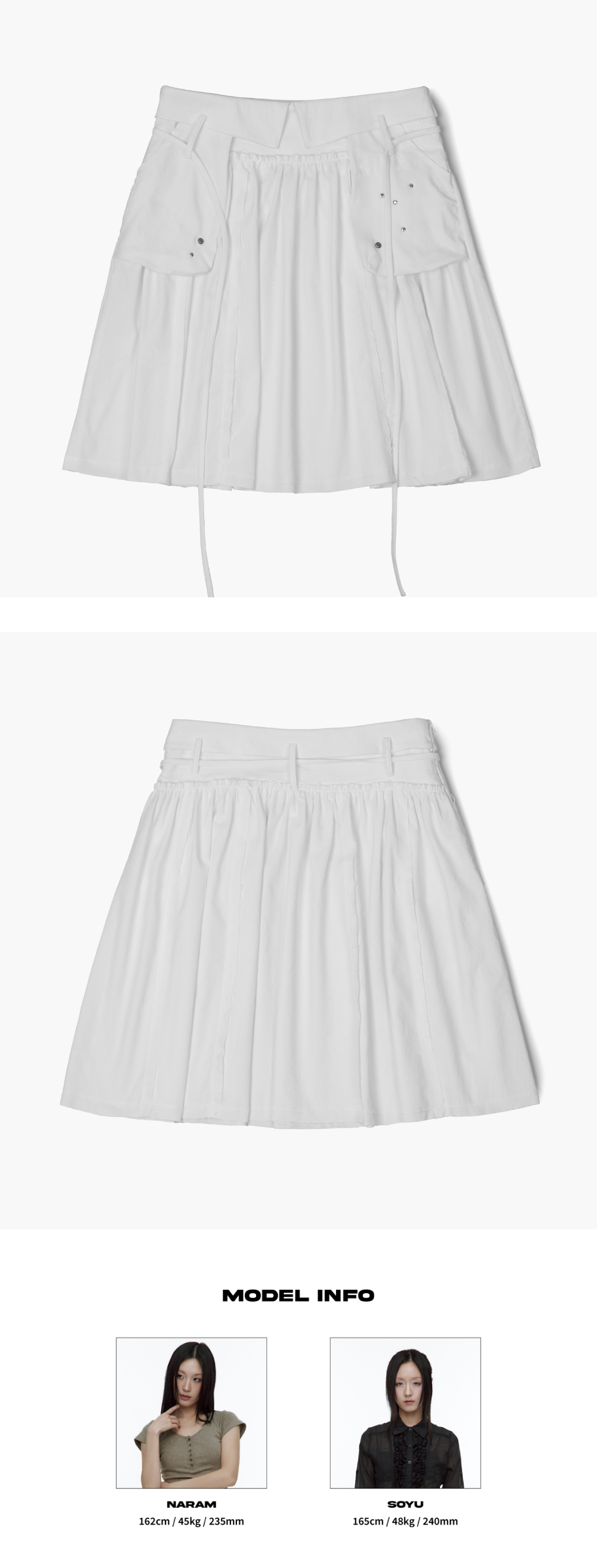 러프넥 아웃 포켓 플리츠 스커트 화이트