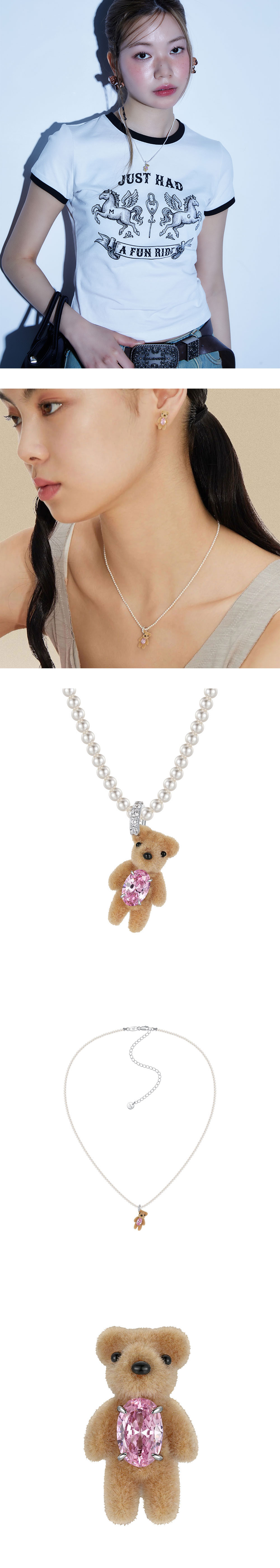 Yvmin Mini Flocked Bear Pearl Necklace Pink - 26SS