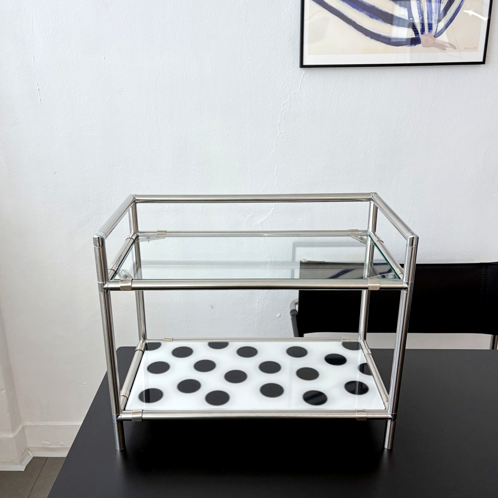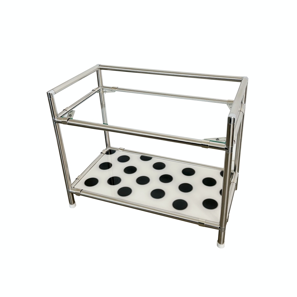 Module Mini Shelf (Dot Ivory) 모듈 미니 선반은 기존 모듈 가구와 달리 디자인 아크릴을 매치해 공간에 감각적인 포인트를 더해주는 제품입니다. 완조립 상태로 배송되며, 유리와 아크릴 선반을 원하는 위치에 자유롭게 조합하여 사용할 수 있어 공간과 용도에 맞는 연출이 가능합니다. 제품 안내 모듈 가구 특성상 약간의 흔들림이 있을 수 있습니다 스테인리스 앵글과 아크릴/유리 사이에 미세한 틈이 존재합니다 하단은 백색 고무 마개로 마감되어 미끄럼을 방지합니다 완조립 상태로 발송되어 별도의 조립 없이 바로 사용 가능합니다 주문 제작 상품으로 3일~14일 이내 발송됩니다. ※ 위 안내된 제품 특성으로 인한 사유는 교환 및 환불이 불가하오니 구매 전 반드시 참고 부탁드립니다. 소재 15T 스테인리스 / 5t 유리 / 5t 아크릴