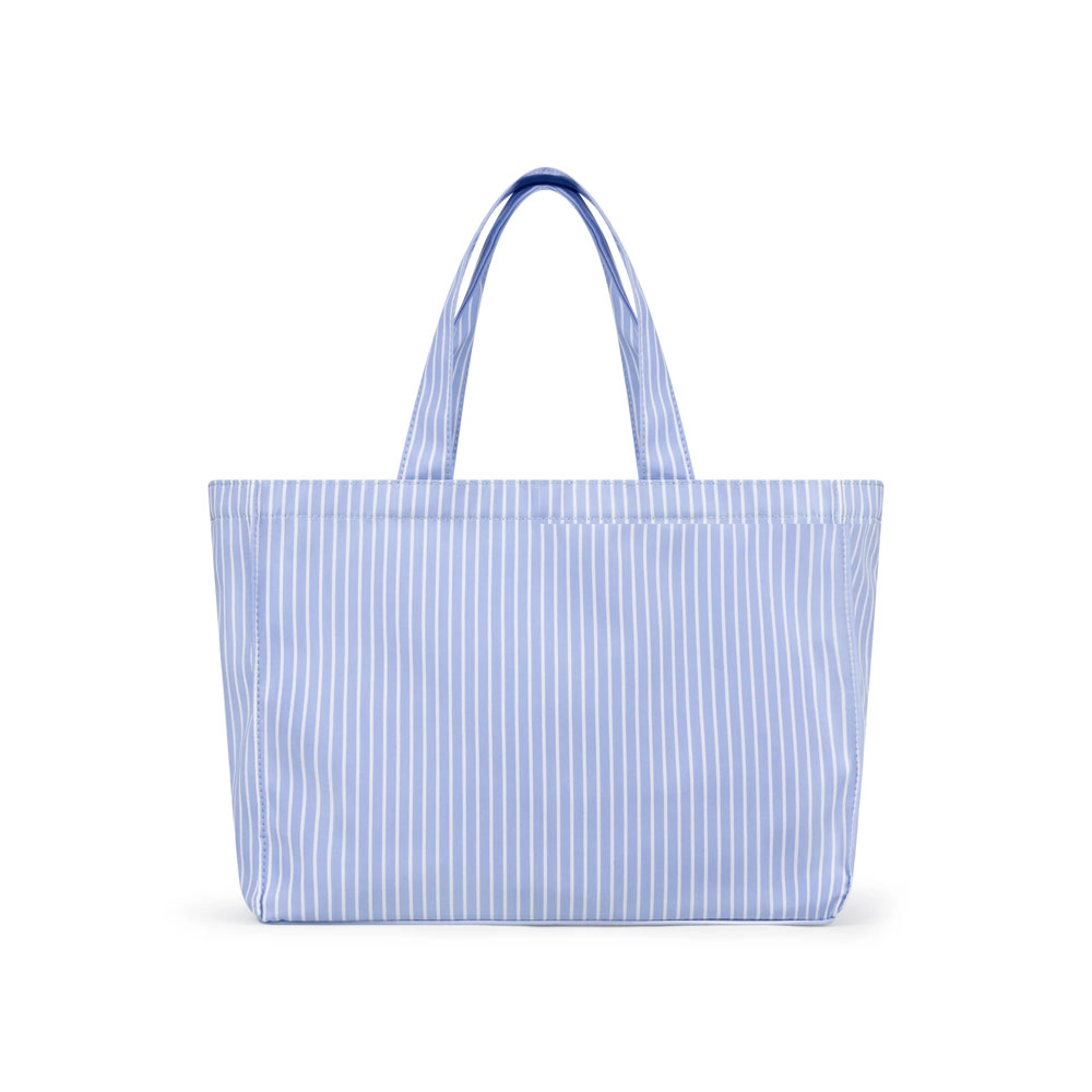 하이 베르나데트 백 블루 앤 화이트 스트라이프입니다. - 부드러운 코튼 팝린 소재 사용 - 일상의 필수 소지품을 여유롭게 수납할 수 있는 디자인 - 내부 리본 매듭 여밈 방식으로 내추럴하고 실용적인 마감