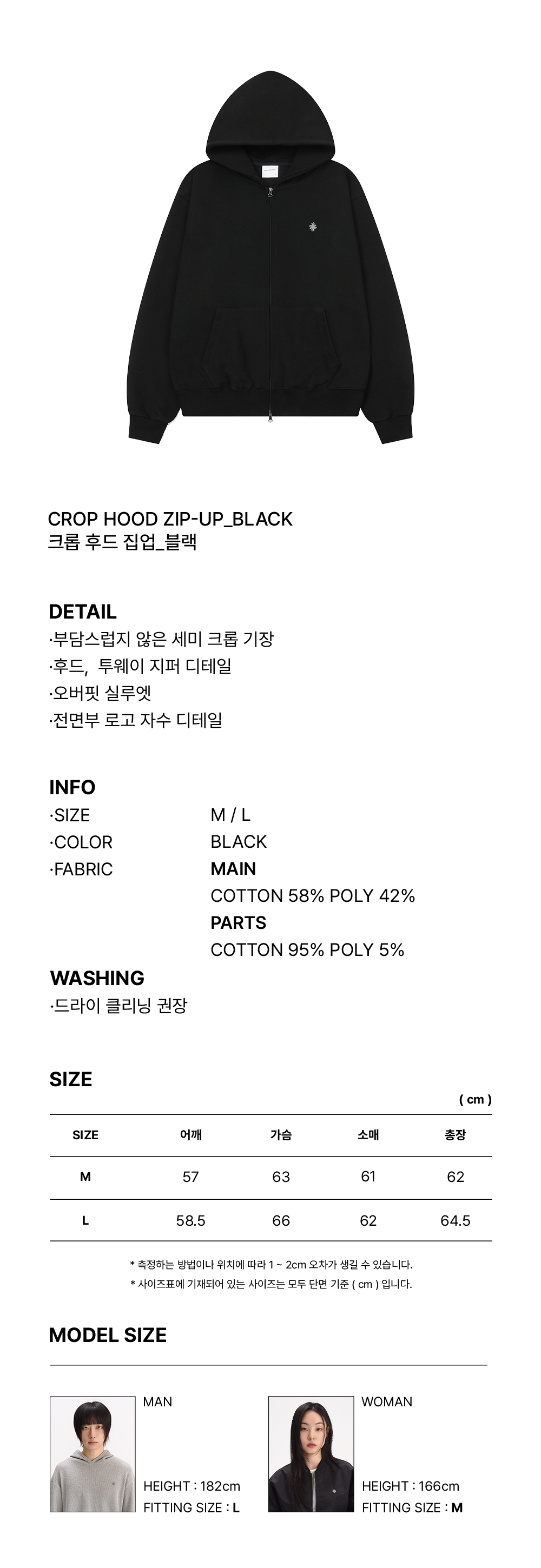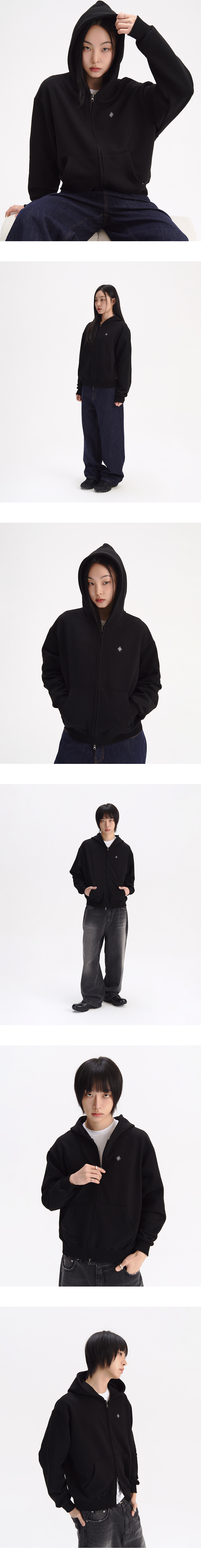 슬로우 레코드 하우스 크롭 후드 집업 블랙