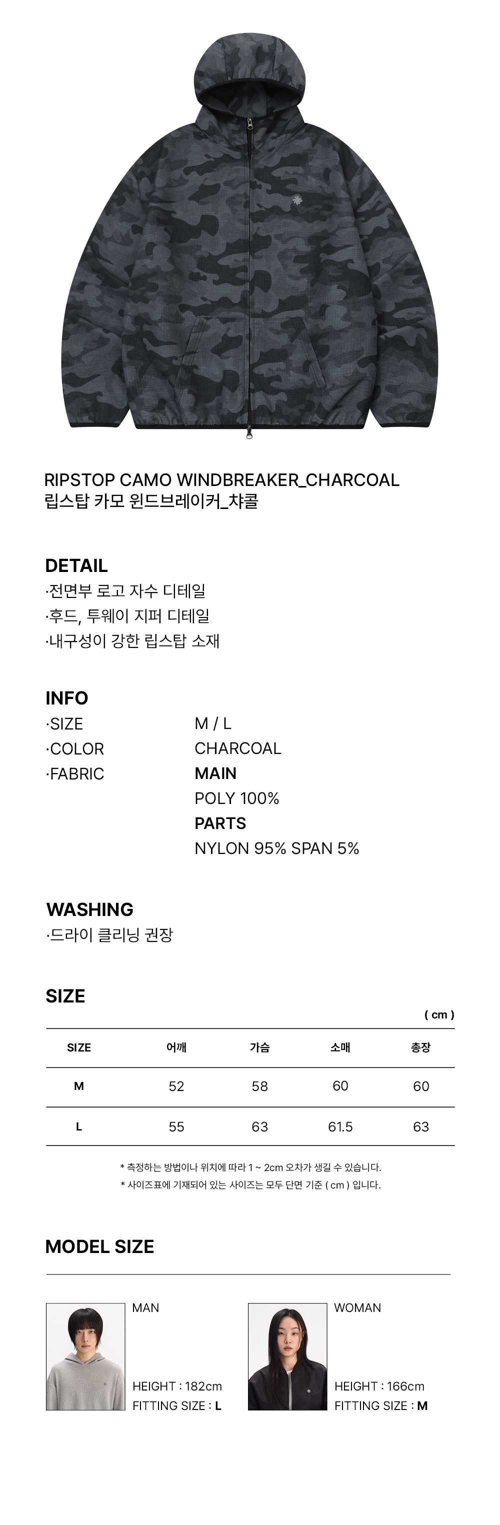 슬로우 레코드 하우스 립스탑 카모 윈드브레이커 챠콜