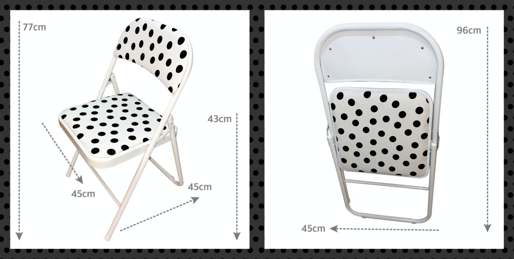 실용성과 디자인을 모두 고려해 제작된 폴딩체어입니다. 간편하게 접고 펼칠 수 있는 폴딩 기능으로 보관이 용이하며, 무소음 구조로 편안하게 사용할 수 있습니다. 인체에 편안한 각도로 설계된 등받이는 안정적인 착석감을 제공하고, 하단에는 미끄럼 방지 보호캡이 장착되어 바닥 손상을 줄이고 안정감을 높였습니다. 귀여운 도트 패브릭과 깔끔한 실루엣으로 공간에 감각적인 포인트를 더해주는 제품입니다. 화이트 철제 프레임 특성상 제작 및 공정 과정에서 미세한 까짐이나 스크래치가 발생할 수 있으며, 이로 인한 교환 및 환불은 불가합니다. (하단 상세 이미지 참고 부탁드립니다.) • 제작 및 발송 기간 : 주문 후 3~12일 이내 발송 예정 • 배송 상태 : 완조립 상태로 발송됩니다