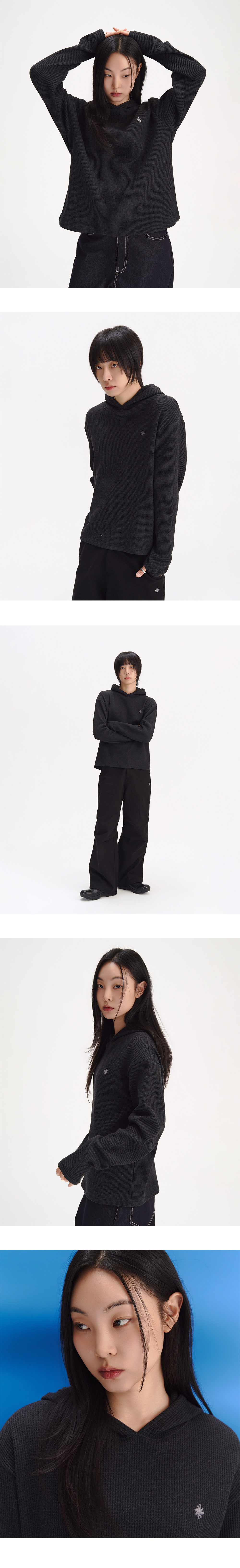 SLOW RECORD HOUSE Waffle Fingerhole Hood Charcoal