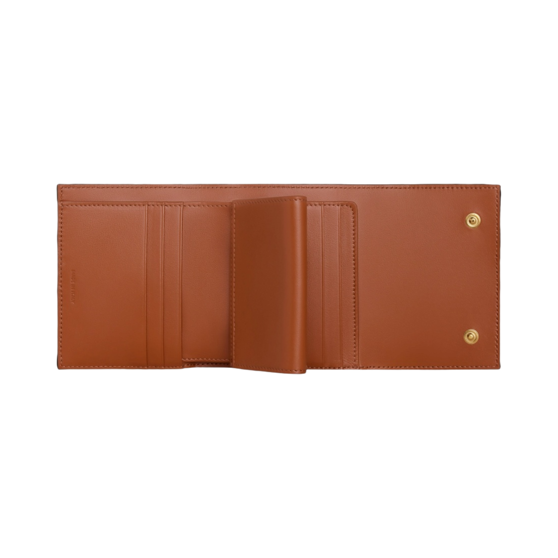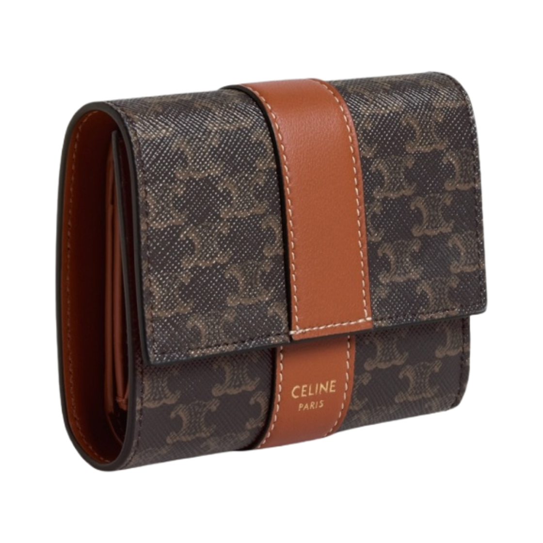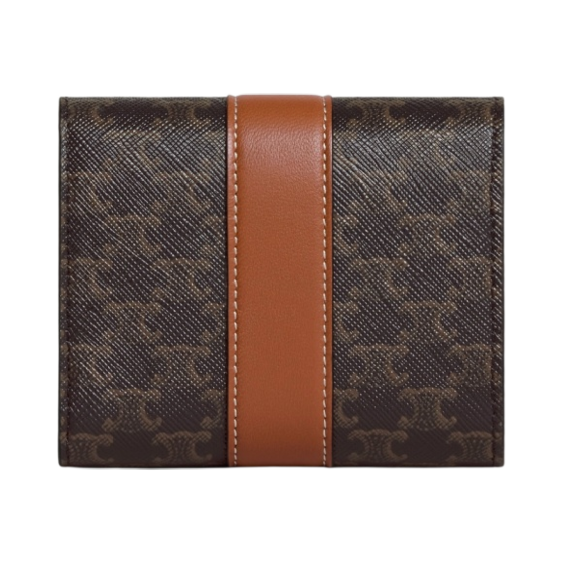 Celine Small Tri-Fold Wallet in Triomphe Canvas & Lambskin Tan