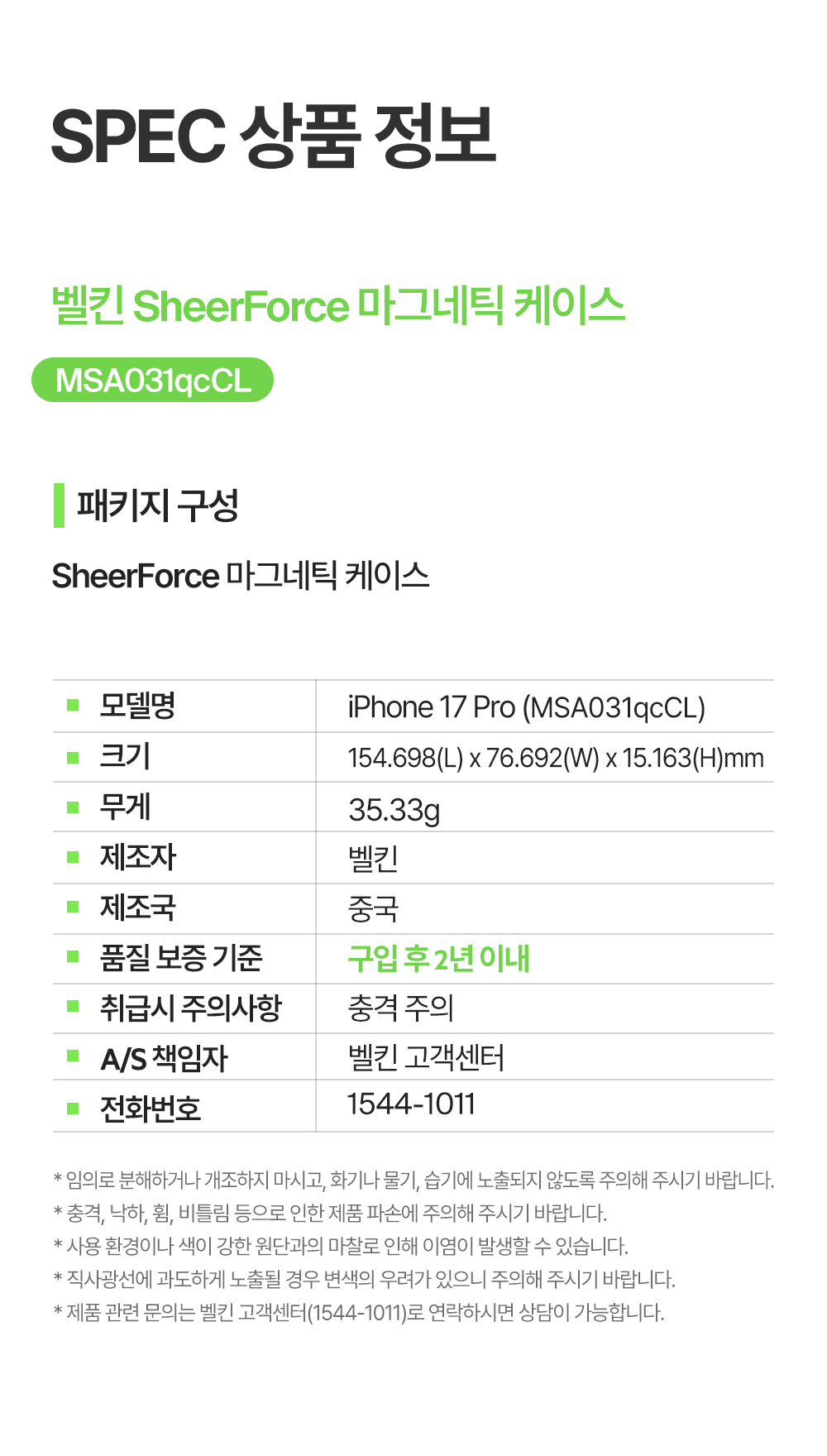 벨킨 아이폰17 프로 맥세이프 마그네틱 케이스 MSA031