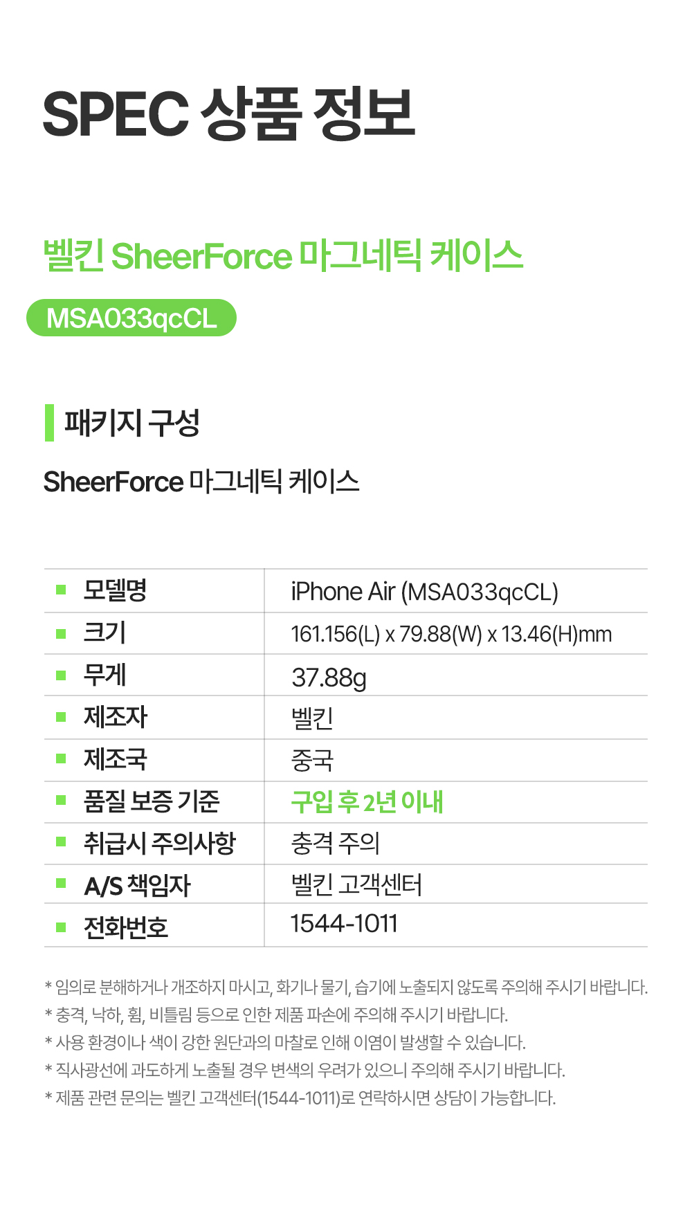 벨킨 아이폰 에어 맥세이프 마그네틱 케이스 MSA033