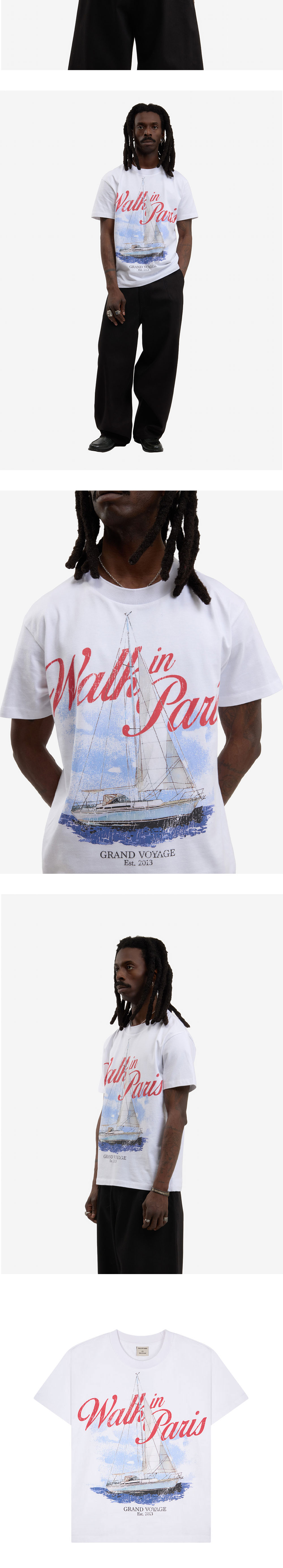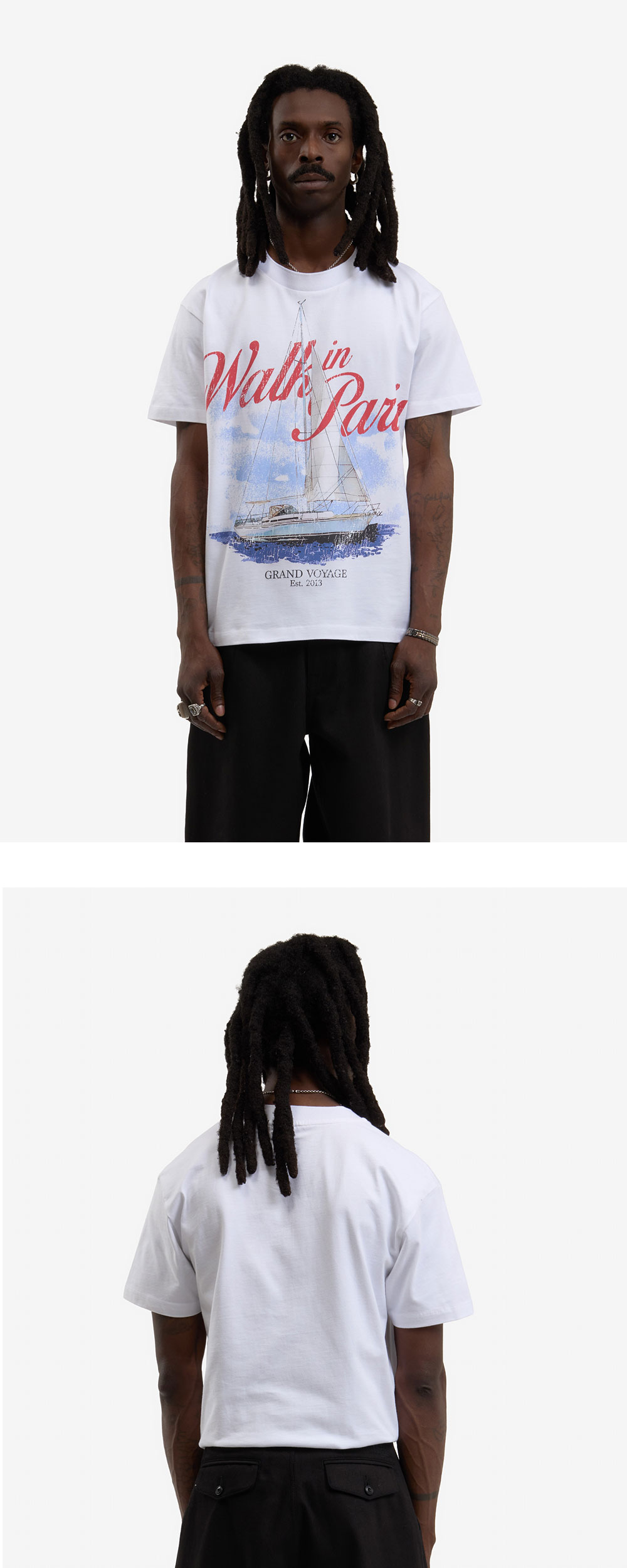 워크 인 파리 그랑 보야주 티셔츠 화이트 코튼입니다. - 전면 빈티지 세일링 그래픽과 레터링 포인트 - 탄탄한 코튼 소재의 깔끔한 크루넥 실루엣 - 'GRAND VOYAGE' 테마의 디자인