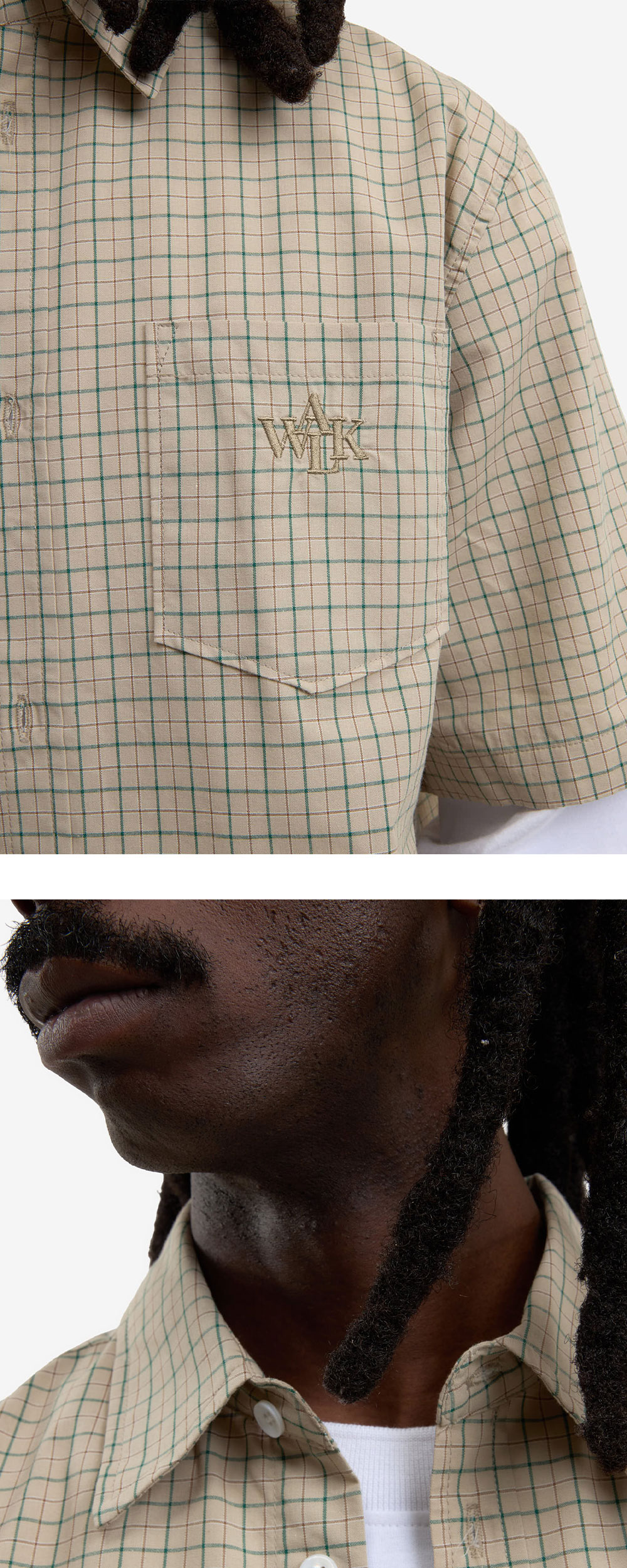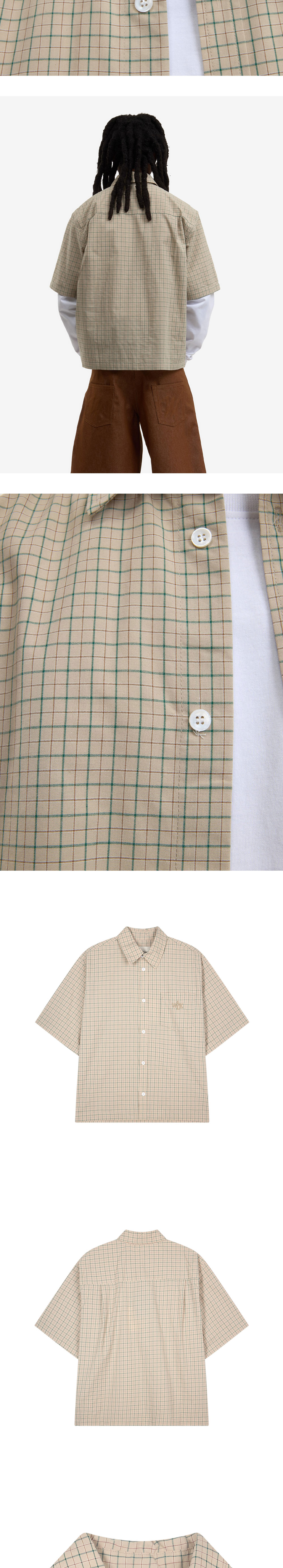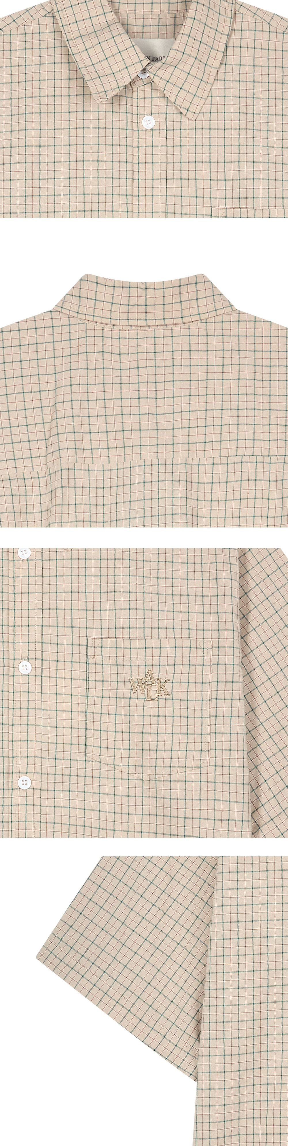 워크 인 파리 베이지 쇼트 슬리브 셔츠 베이지입니다. - 클래식한 체크 패턴의 여유로운 실루엣의 반팔 셔츠 - 가슴 포켓에 적용된 시그니처 로고 자수 디테일 - 가볍고 통기성 좋은 소재감으로 쾌적한 착용감 제공