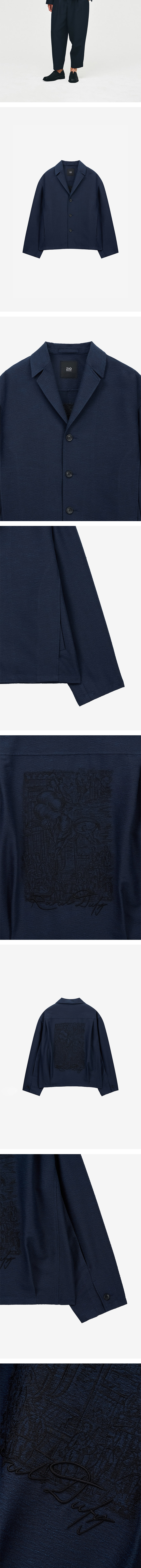 - COCOON-FIT - 코쿤핏 실루엣으로, 아방가르드한 룩 표현 - 매력적인 조직감과 실루엣이 잘 살아나는 소재로 제작 - 앞,뒷판 터크디자인으로 입체감있는 실루엣 연출 - 뒷판 라울뒤피 엠브로이드 아트워크 - 벌룬핏 실루엣의 쓰리턱 팬츠로, 자켓과 함께 아방가르드한 실루엣 표현 - BI2PT268NY와 세트 구성