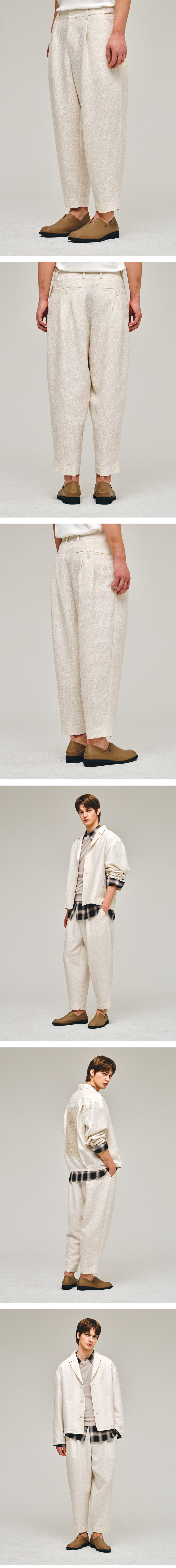 - BI2JK269OW와 세트 구성 - 원턱 벌룬 팬츠 - 매력적인 조직감과 실루엣이 잘 살아나는 소재로 제작 - 앞 1TUCK, 뒤 2TUCK 디자인으로 입체감있는 실루엣 연출 - 오비 히든밴딩으로 편안한 착용감