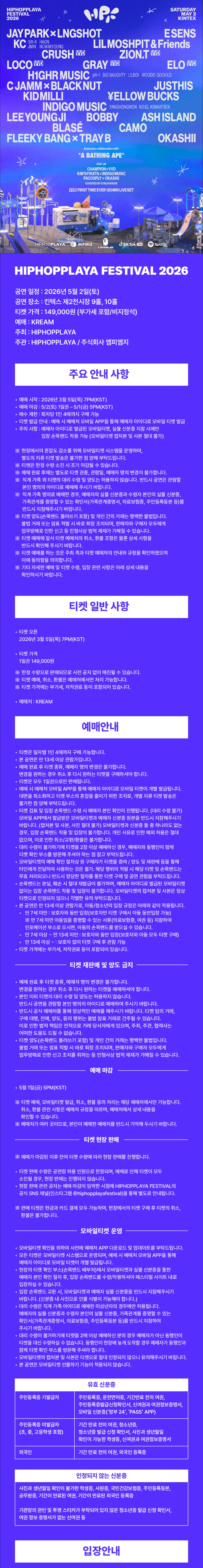 티켓 구매 시 본 내용을 모두 확인하였으며, 이에 동의한 것으로 간주됩니다.