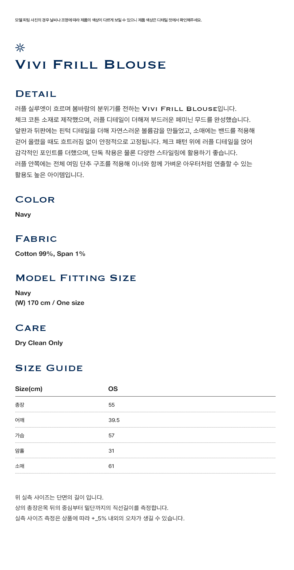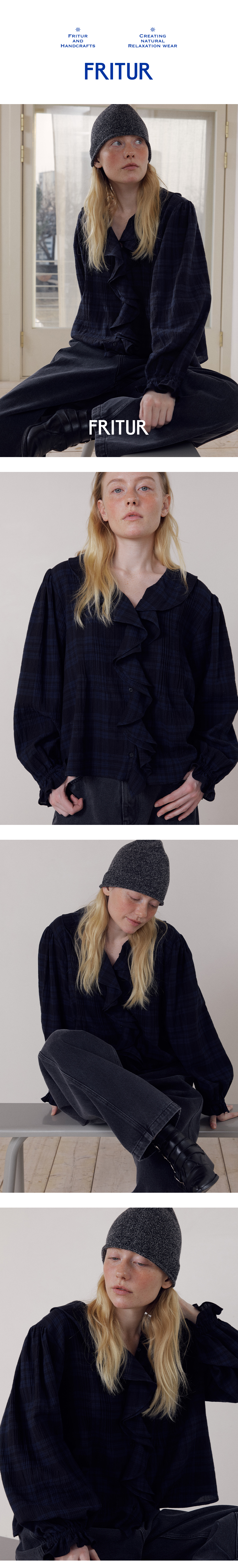 프리터 비비 프릴 블라우스 네이비