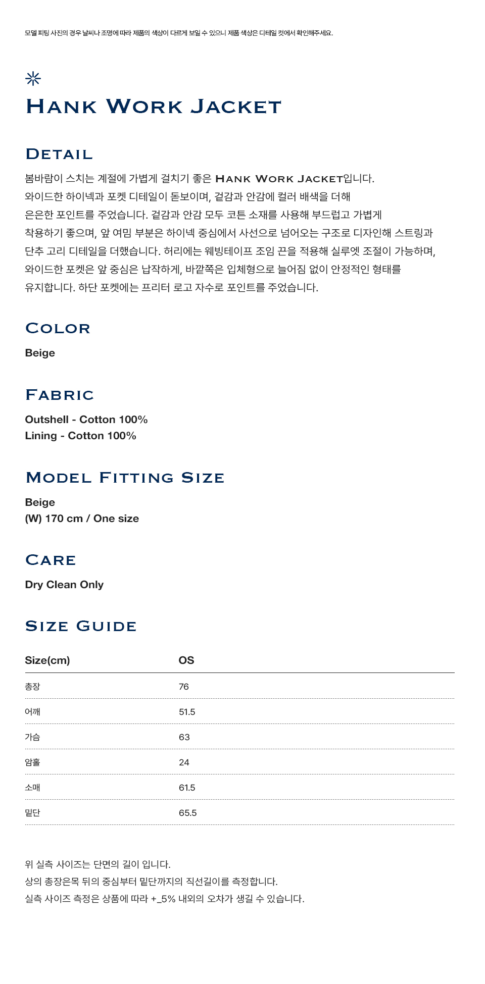 프리터 행크 워크 자켓 베이지
