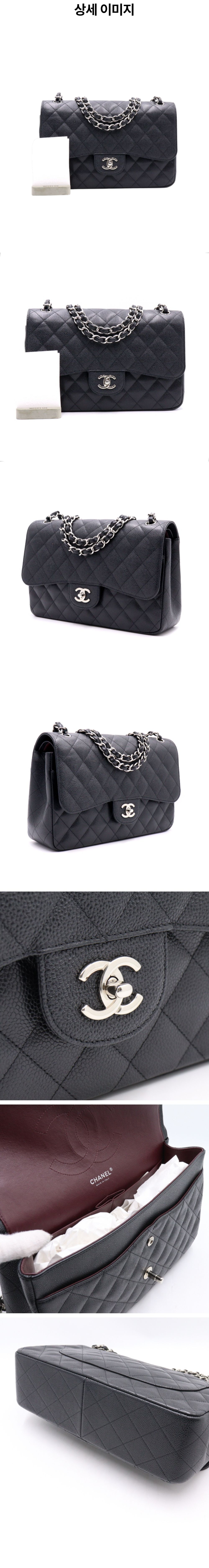 샤넬 A58600 블랙 캐비어 클래식라지 점보 은장체인 숄더백 aa39711