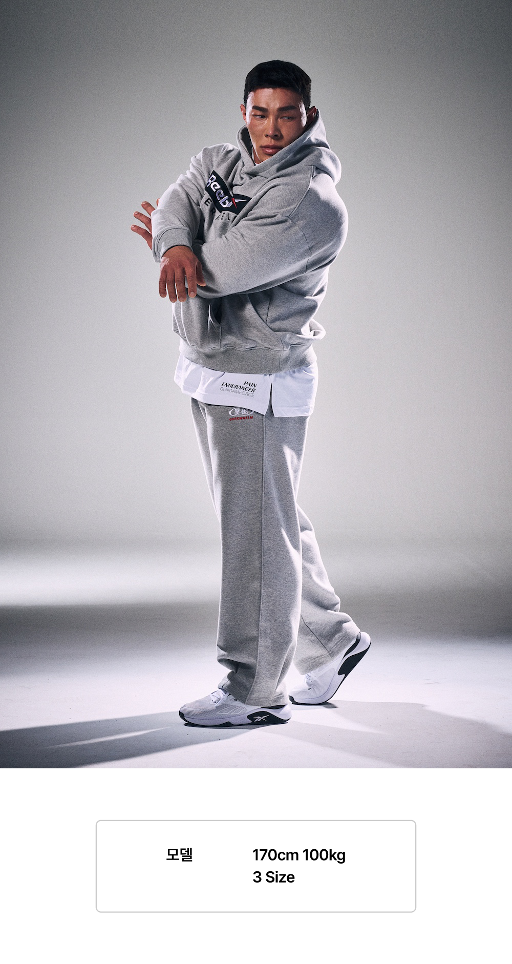 리복과 압도가 함께 완성한 콜라보레이션 스웻웨어. 고밀도의 테리 조직 스웻 원단을 사용해 탄탄한 실루엣과 안정적인 착용감을 구현했으며, 트레이닝은 물론 일상에서도 흐트러짐 없는 핏을 유지합니다. 미니멀한 디자인을 기반으로, 리복의 스포츠 헤리티지와 압도의 스트리트 감성이 균형 있게 결합된 제품입니다. 과한 디테일 없이 소재·중량·핏에 집중한 설계로 단독 착용부터 셋업 스타일링까지 폭넓게 활용 가능합니다.