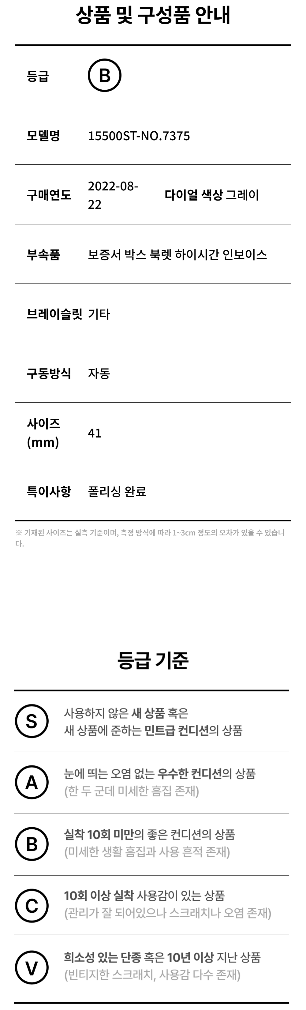 오데마피게 로얄오크 41-15500ST 그레이 바 NO.7375