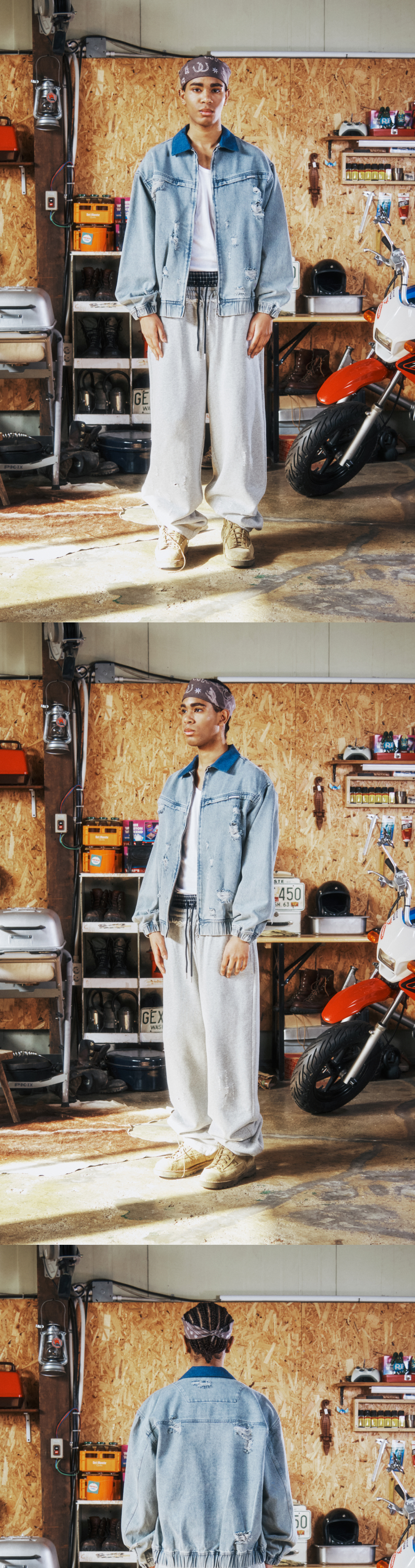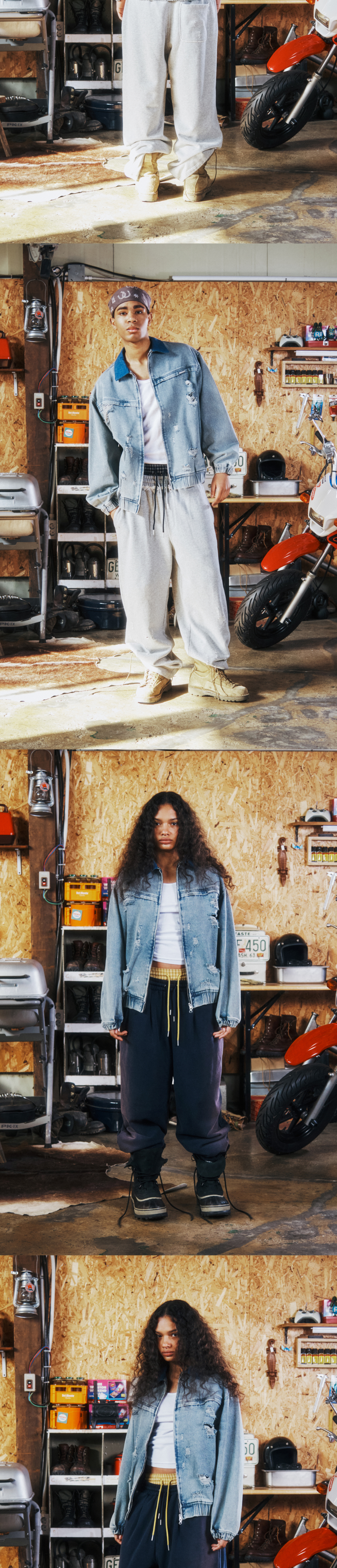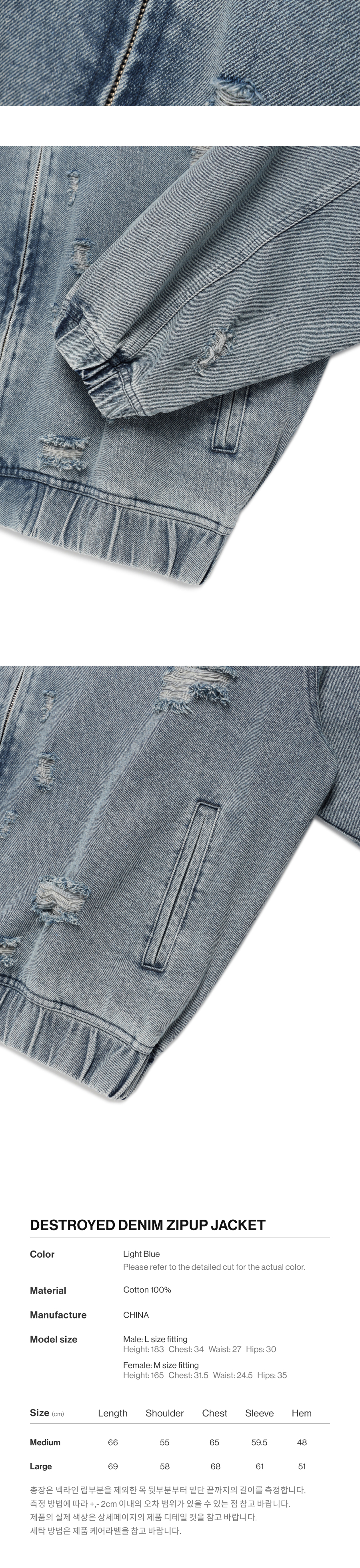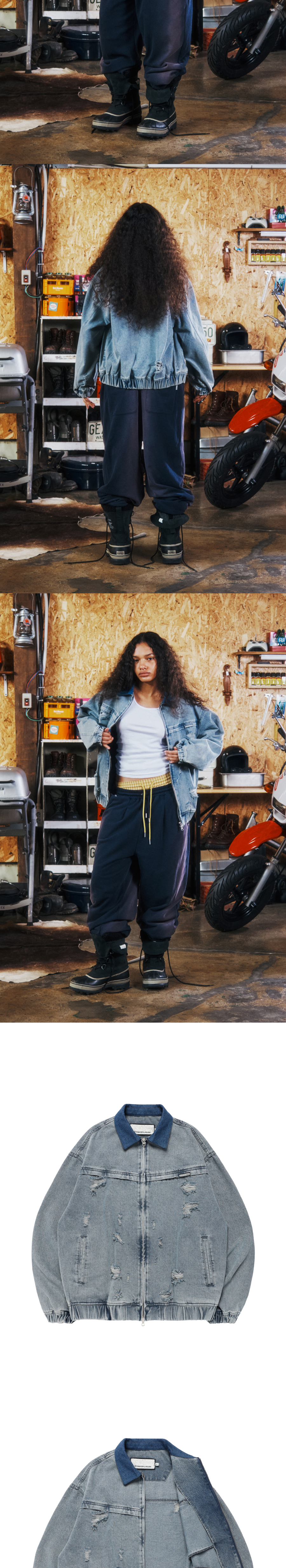 더바이닐하우스 디스트로이드 데님 집업 자켓 라이트 블루