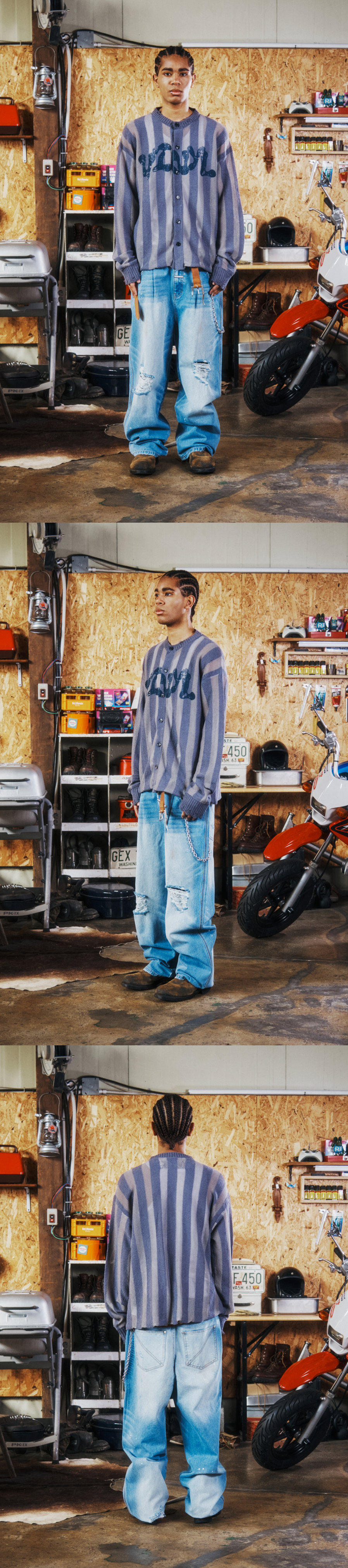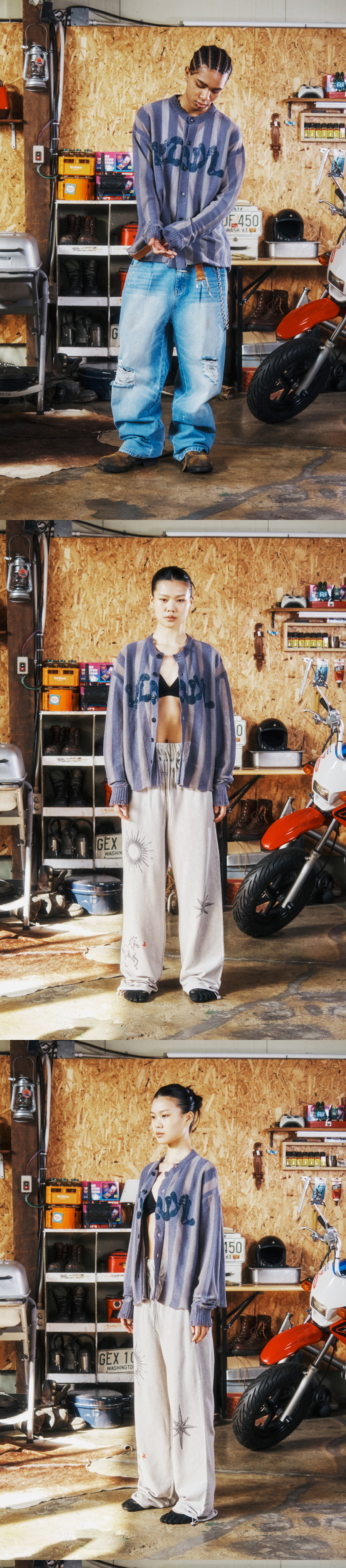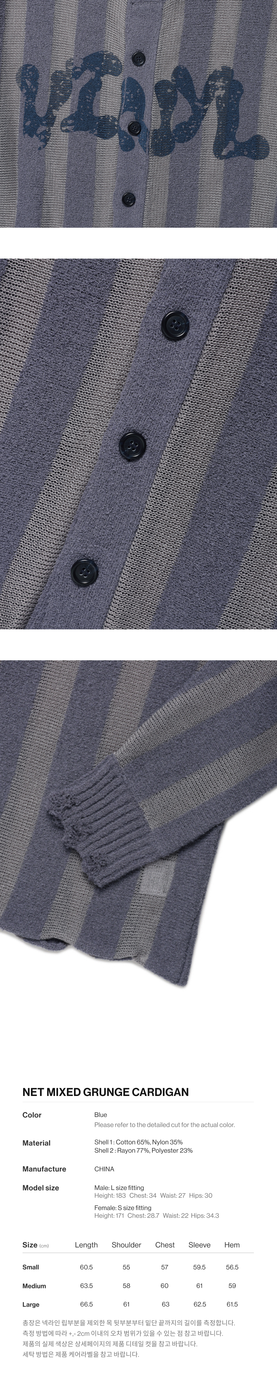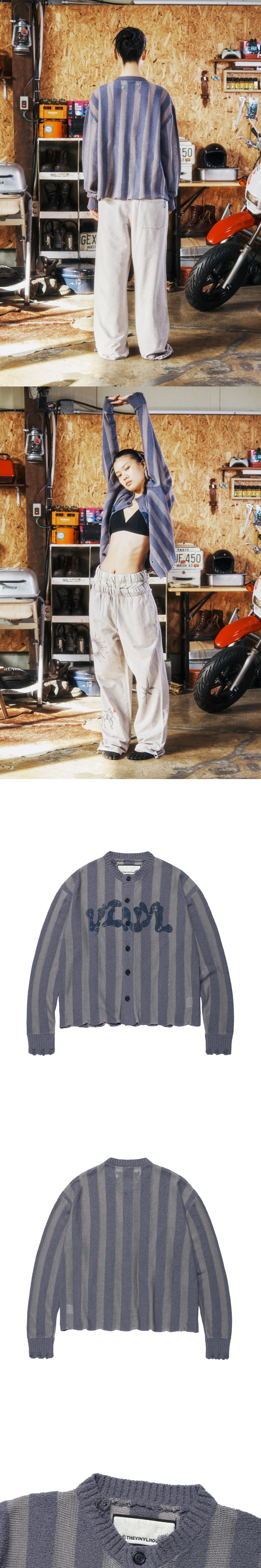 더바이닐하우스 네트 믹스드 그런지 가디건 블루