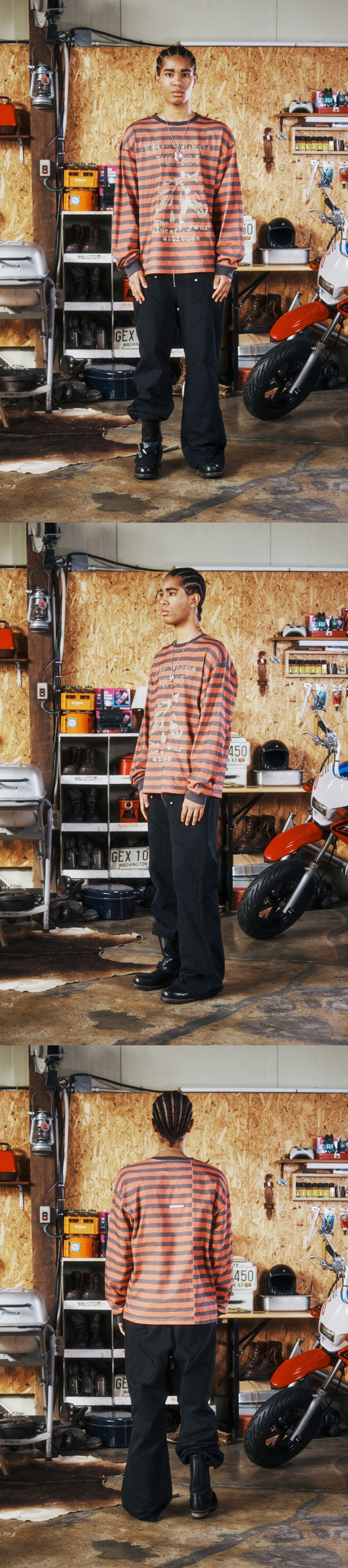더바이닐하우스 블리드 스트라이프 롱슬리브 티셔츠 레드
