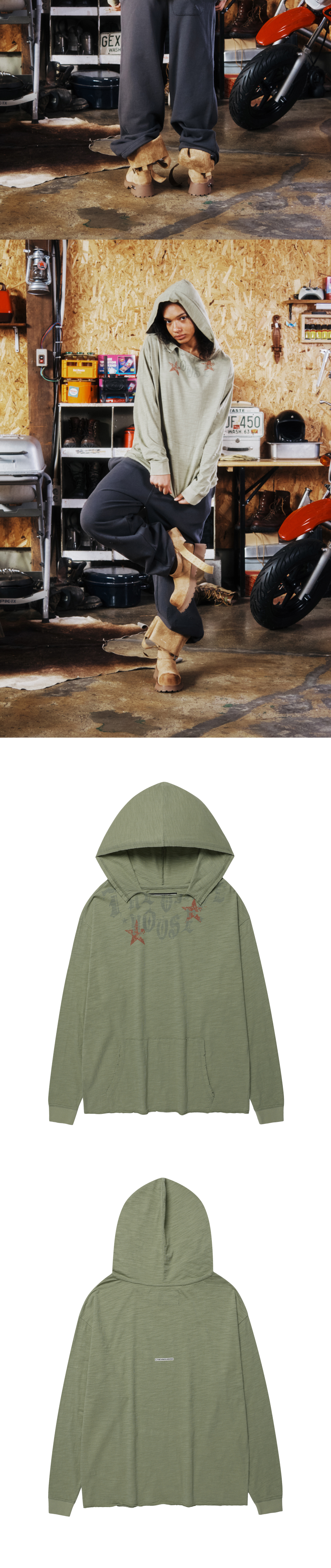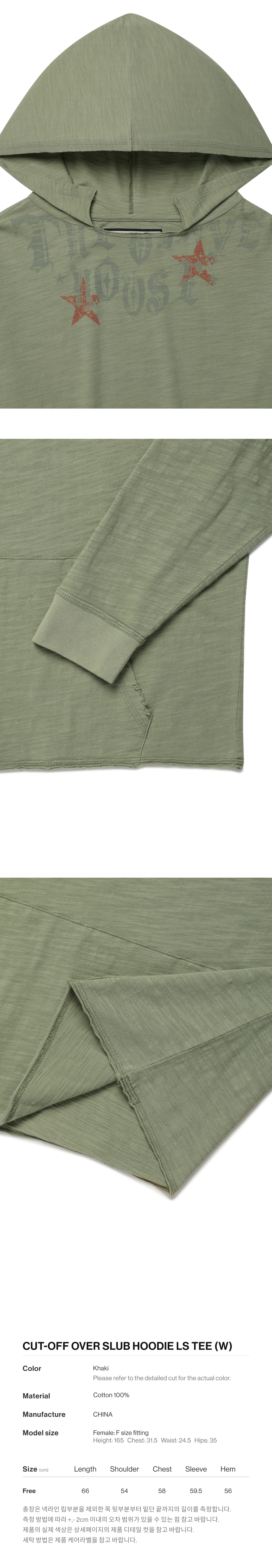 더바이닐하우스 컷 오프 오버 슬럽 우먼 후디 롱슬리브 티셔츠 카키