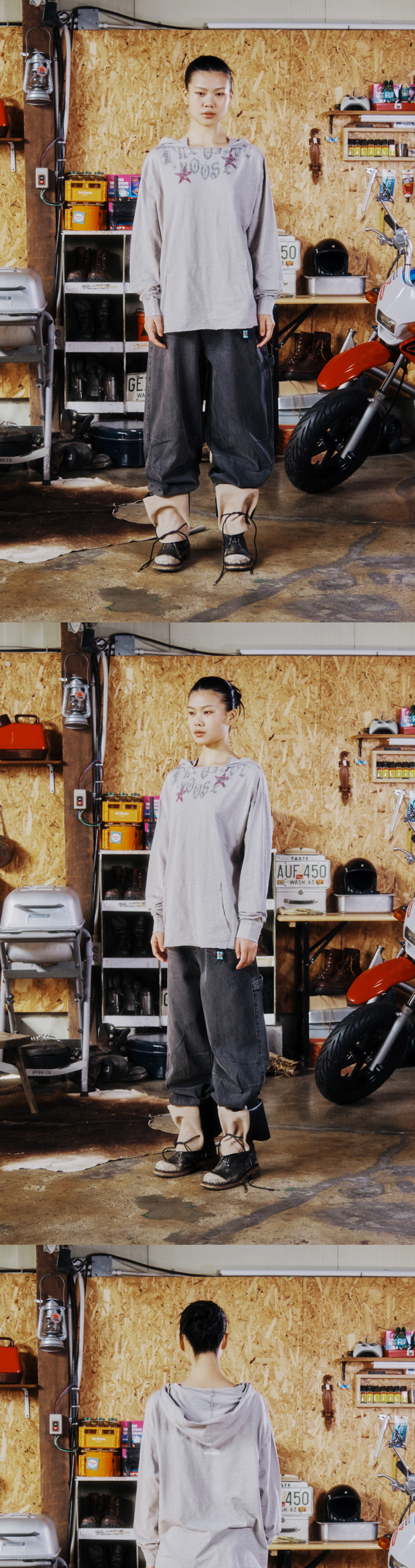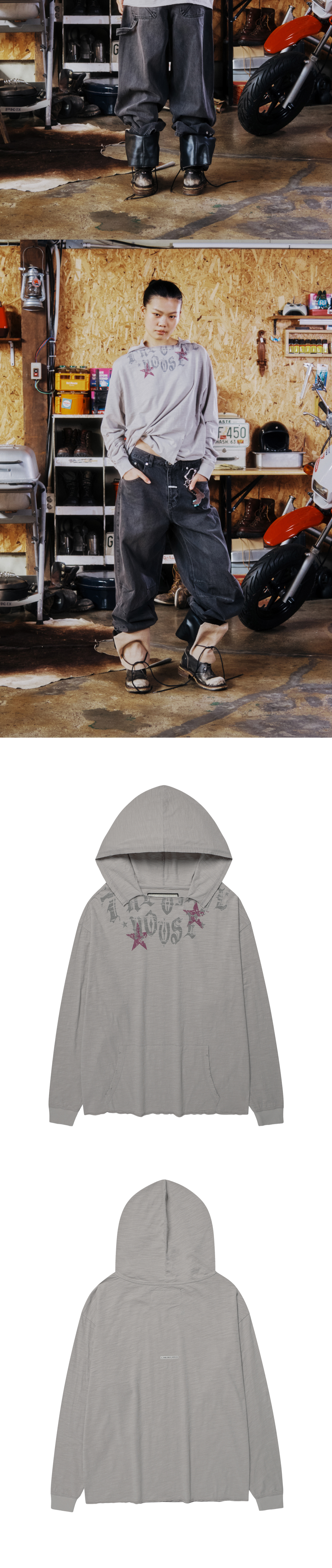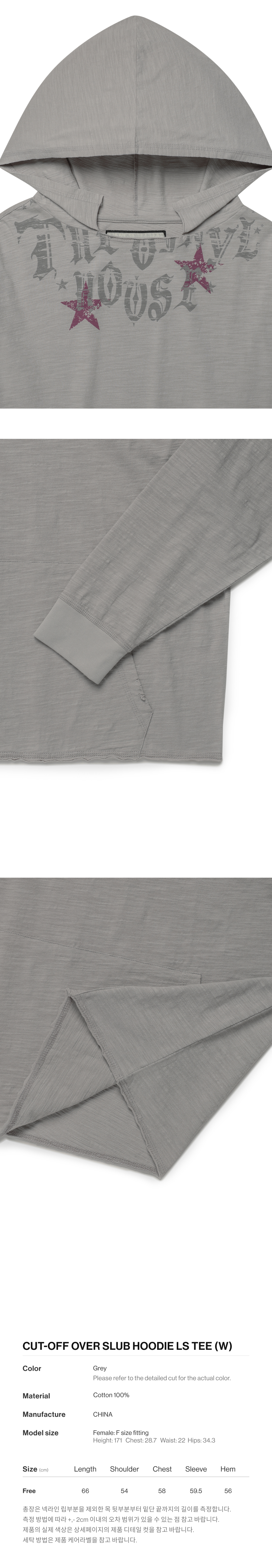 더바이닐하우스 컷 오프 오버 슬럽 우먼 후디 롱슬리브 티셔츠 그레이