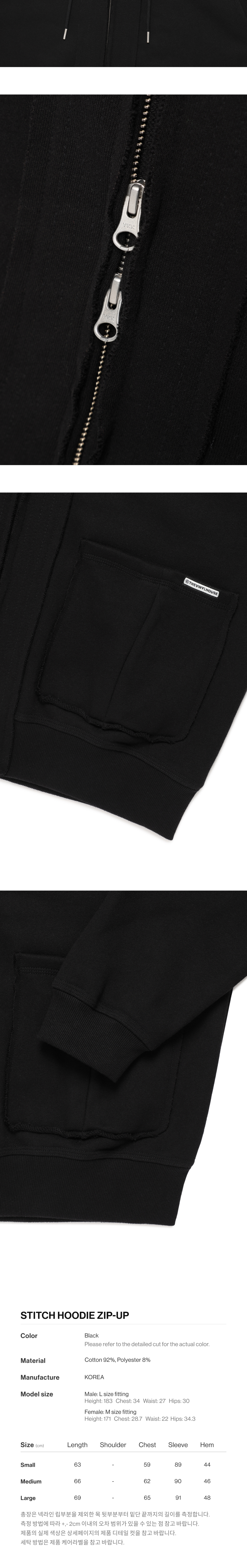더바이닐하우스 스티치 후드 집업 블랙