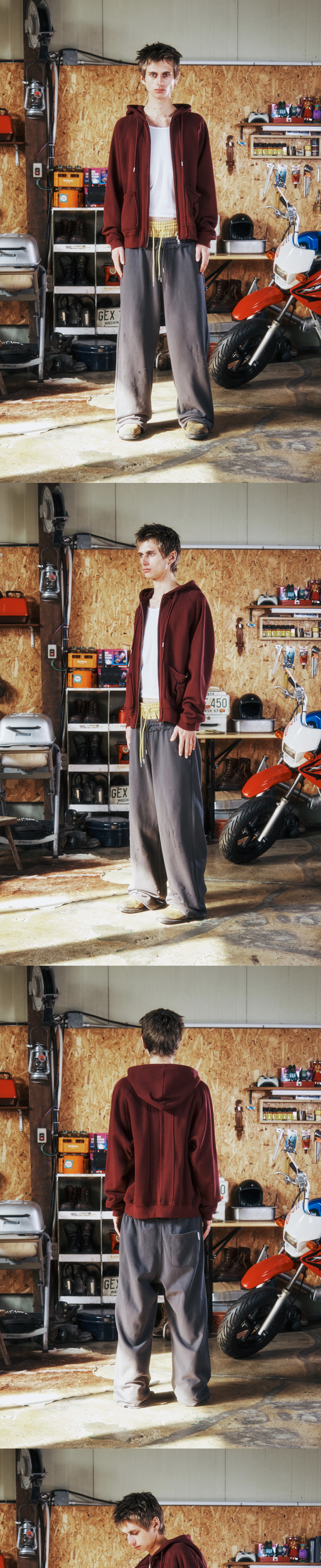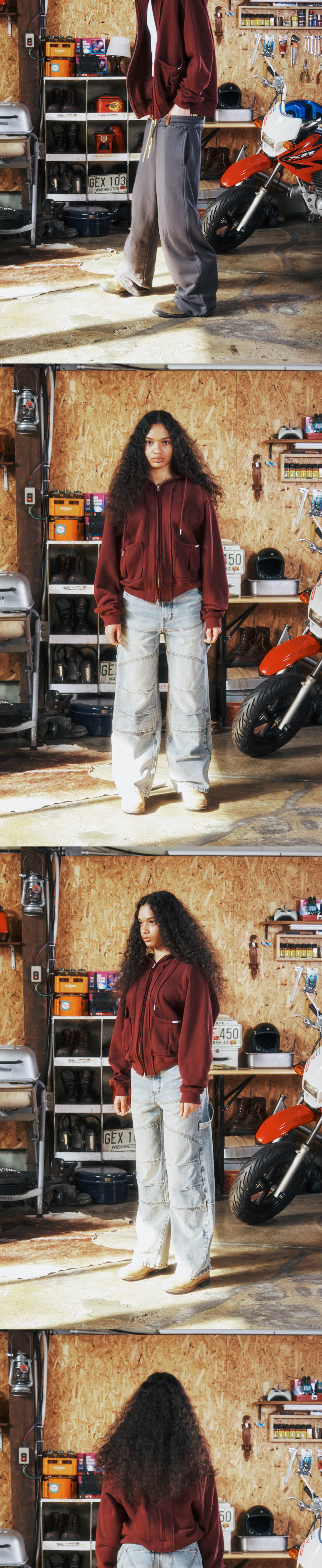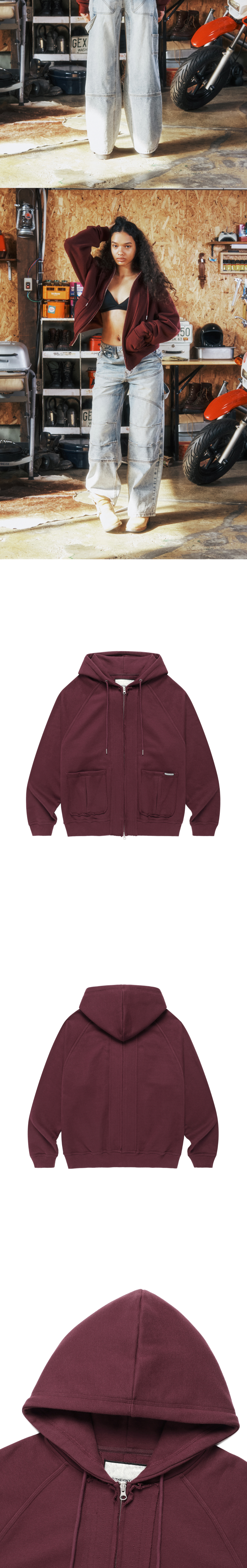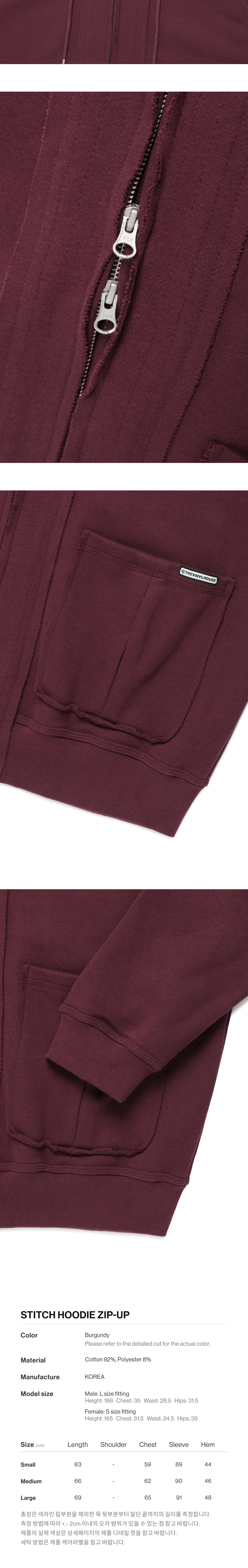 더바이닐하우스 스티치 후드 집업 버건디