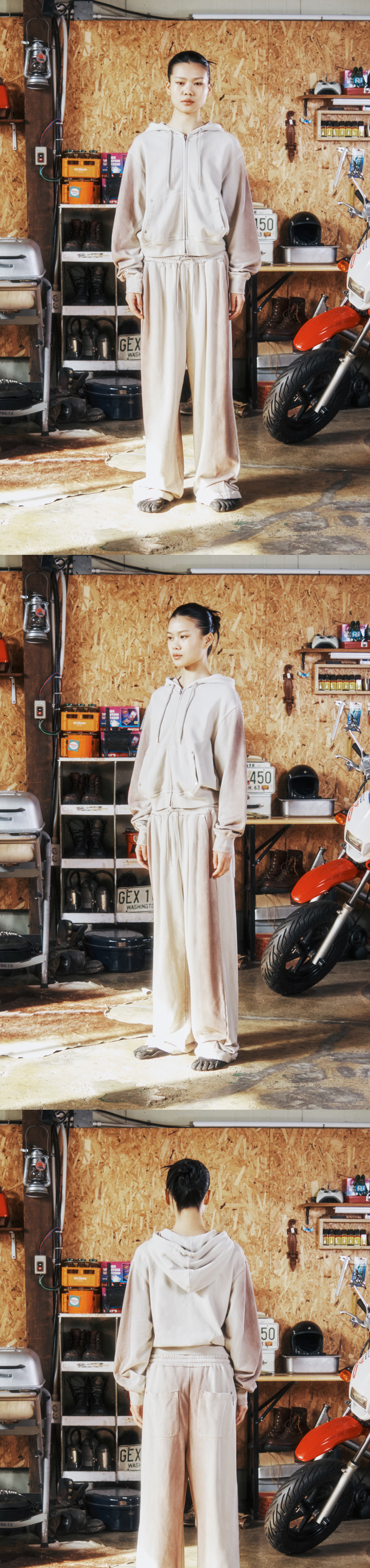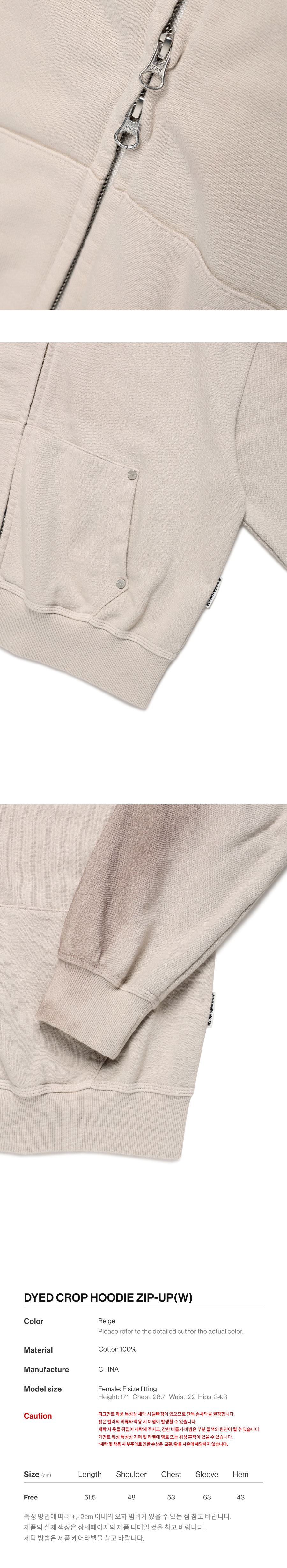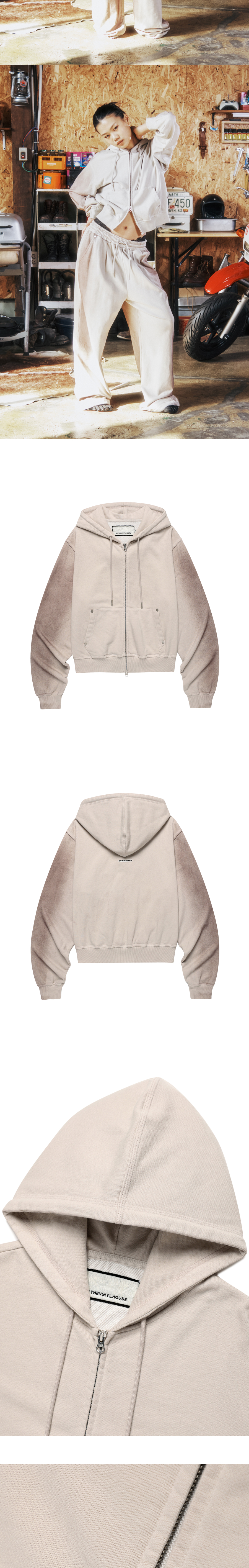 더바이닐하우스 다이드 우먼 후드 집업 베이지