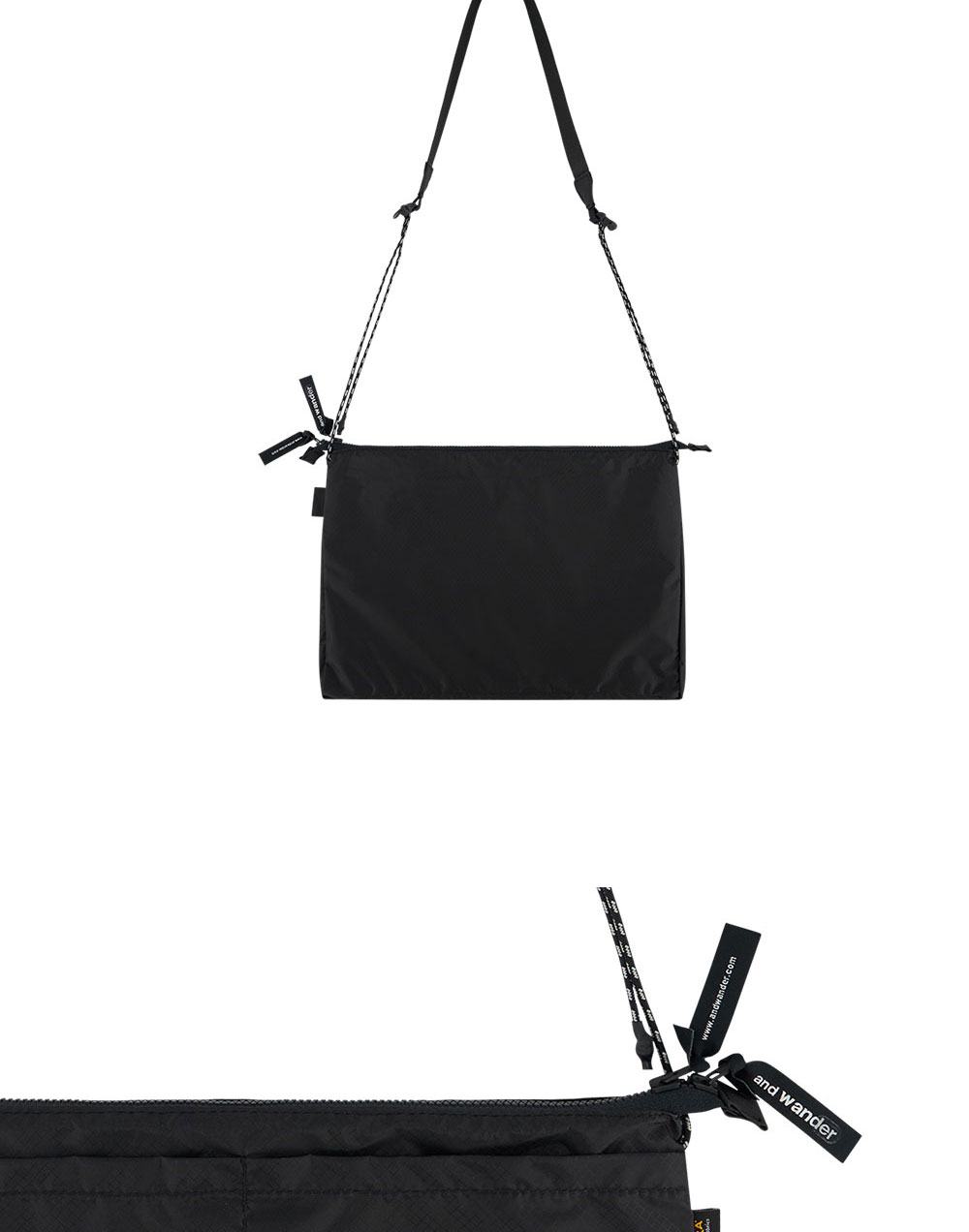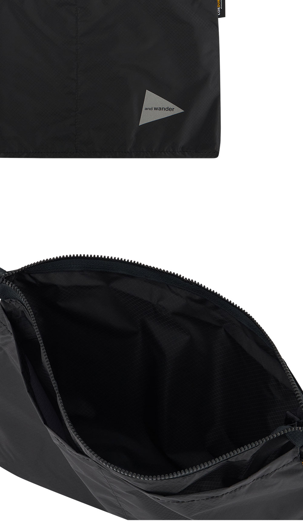 앤드 원더 130 실 사코슈 블랙 입니다. - 30D 코듀라 나일론 소재의 가볍고 질긴 내구성 - 실리콘 코팅으로 우수한 발수 및 방수 기능 - 전면 오픈 포켓으로 소지품의 빠른 수납 가능 - 탈부착 가능한 리플렉티브 로프 스트랩 - 상단 더블 지퍼와 로고 디테일 포인트