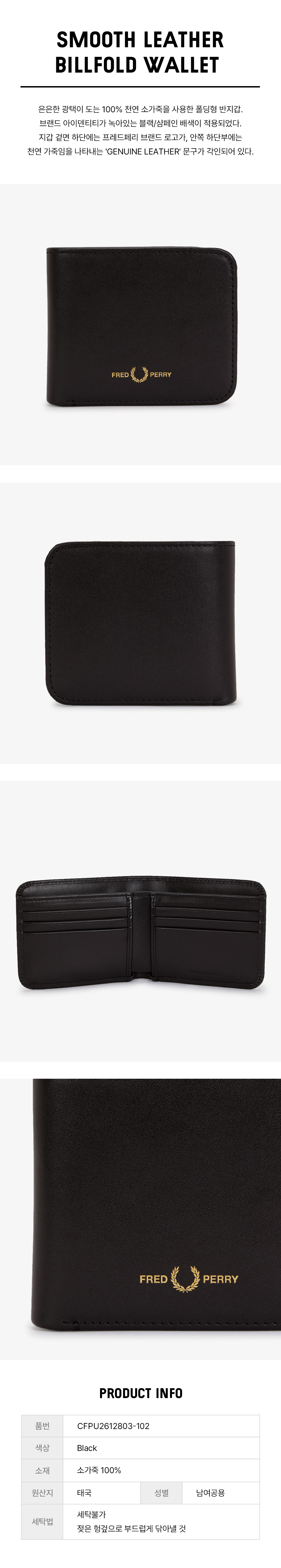 프레드페리 스무스 레더 빌 폴드 월렛 블랙