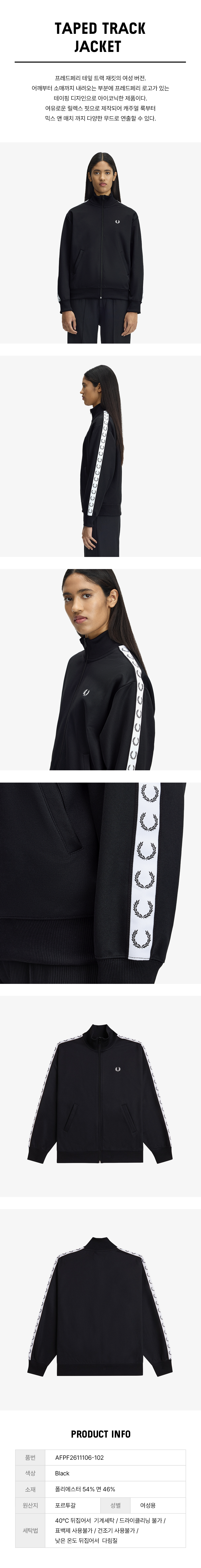 프레드페리 우먼즈 테잎 트랙 재킷 블랙
