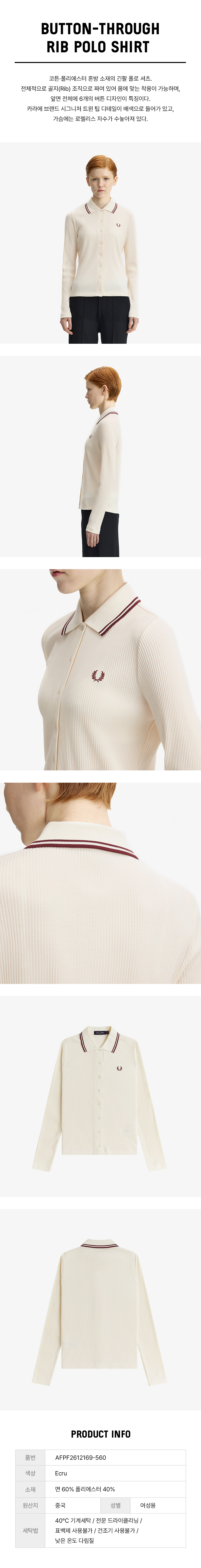 프레드페리 우먼즈 버튼스루 립 폴로 셔츠 에크루